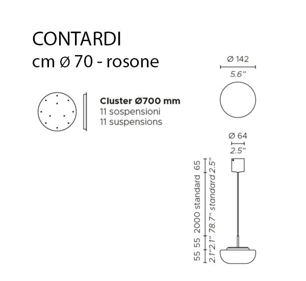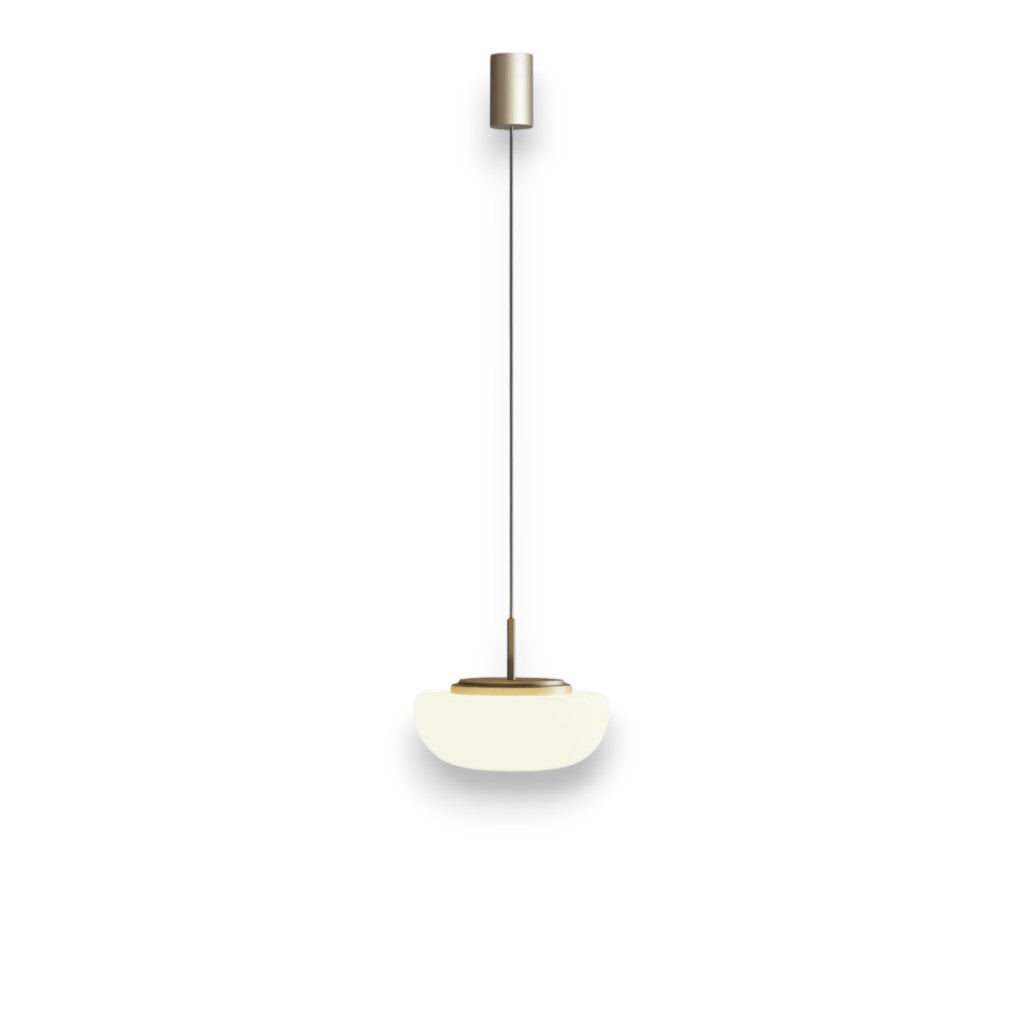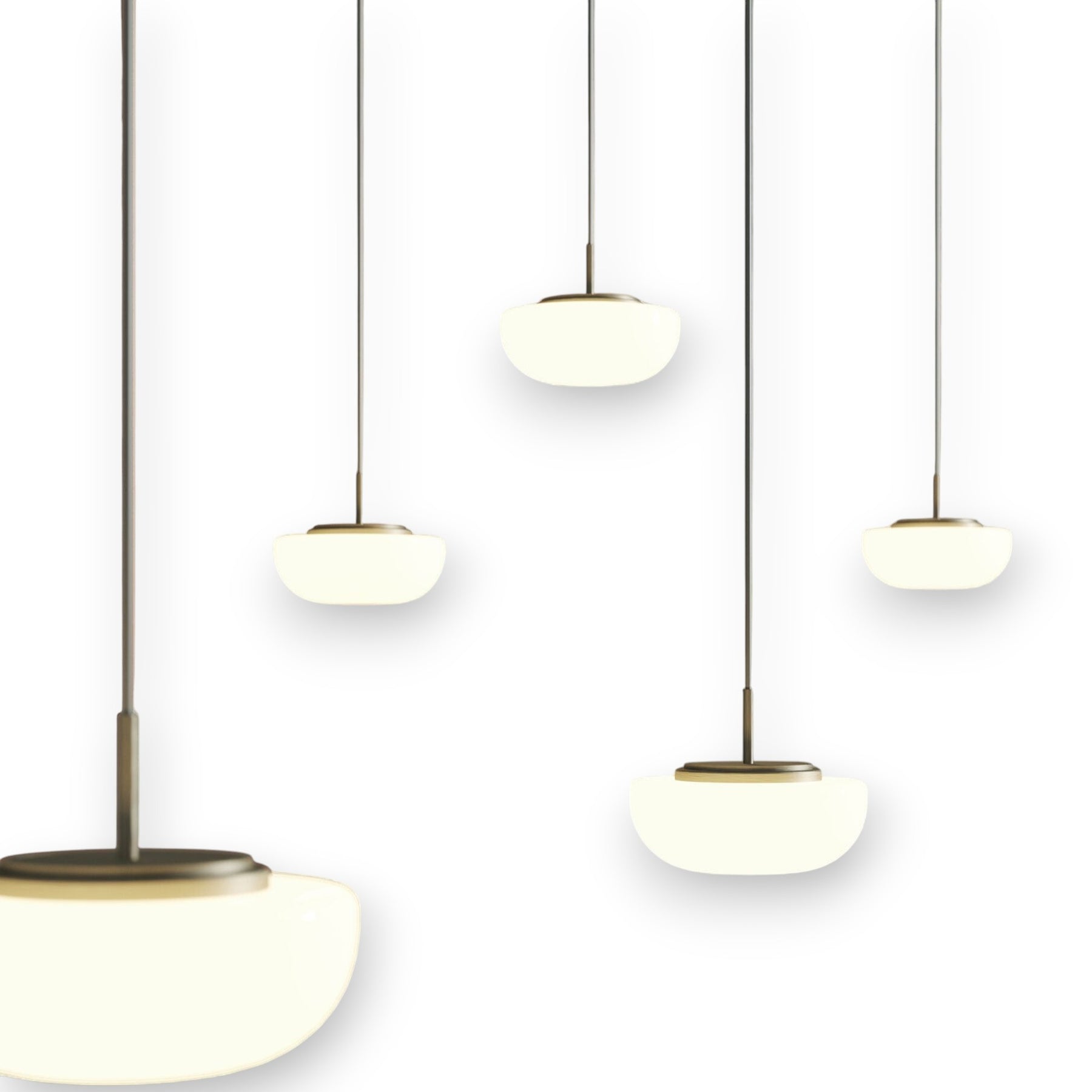 The Kiki So pendant lamp, designed by Contardi Studio, is a versatile lighting solution that allows for creative compositions. Thanks to its fabric cables and ceiling mounting ring, this pendant version can be arranged in unique configurations, adding personality and elegance to any interior space. The white opal glass diffusers emit a soft, warm light that complements the satin gold nickel finish structure.