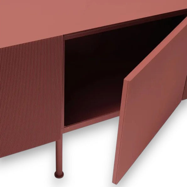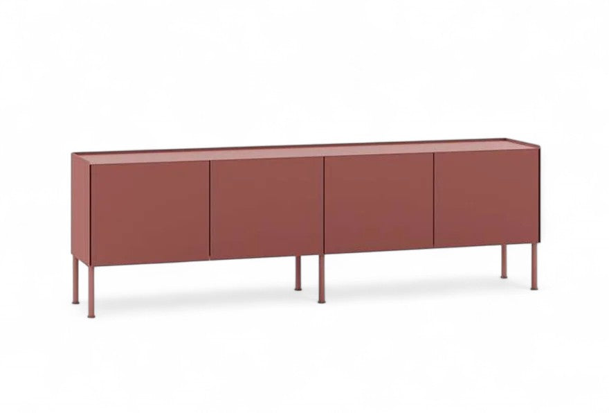 The Samba low four-door sideboard, designed by David Lopez Quincoces and Francesco Meda for the Fast collection, combines sleek functionality with striking design. Crafted from painted aluminum, the sideboard features a clean-lined structure and a matte Autumn Red finish that adds warmth and character to contemporary interiors.