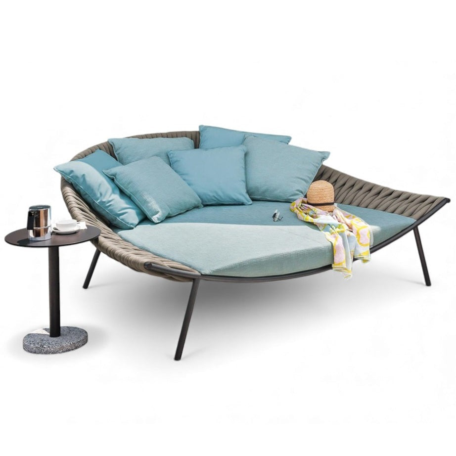 ARENA redefines outdoor relaxation, merging the elegance of a designer garden sofa with the generous comfort of a large outdoor bed. Designed by Gordon Guillaumier, this unique piece introduces a hybrid seating experience within the RODA universe.
