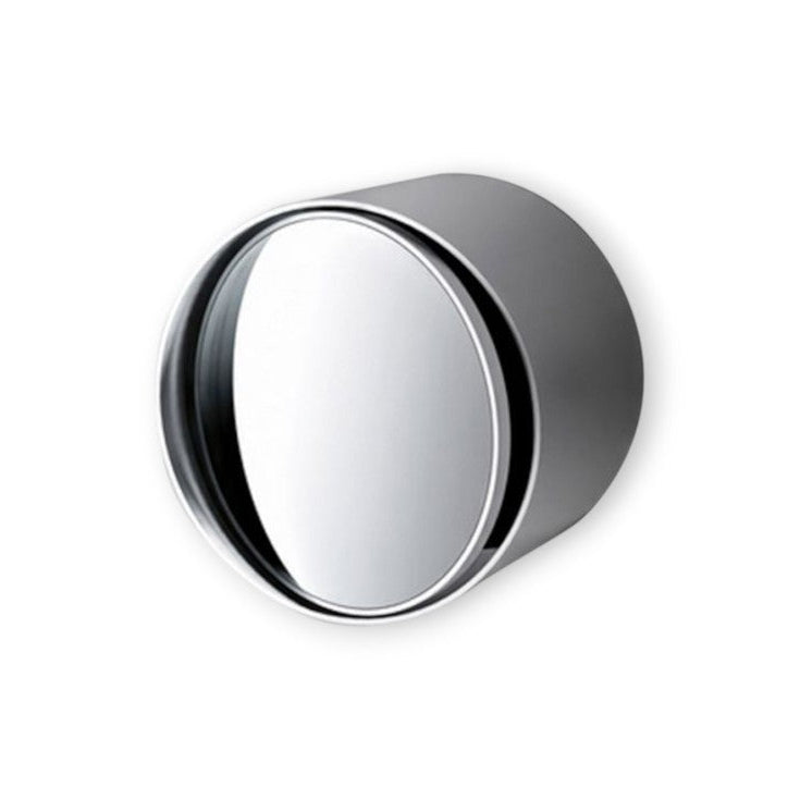 The Index Double-Sided Wall Mirror, designed by Felicia Ferrone, combines functionality with sculptural elegance. Its 15 cm-thick cylindrical structure in satin-finished stainless steel swivels to reveal two sides: a flat mirror and a 2x magnification mirror, each with a 200 mm diameter. Ferrone describes it as "a small jewel for the wall, reflecting light and space."