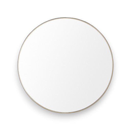 The Ren circular mirror is available in SC 22 Chiffon leather with a Canaletto Walnut frame.