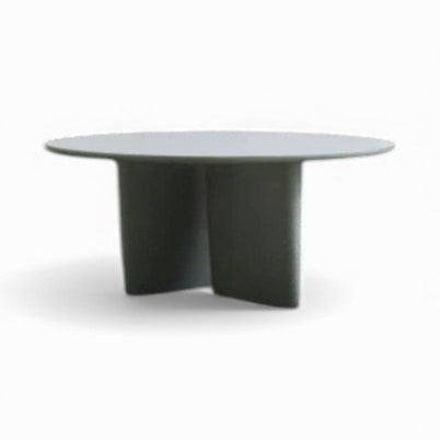 This table's unique design is highlighted by the combination of a circular top and a base structure consisting of two rectangular-shaped tops with rounded corners, positioned and spaced to form a right angle. The Tobi - Ishi Outdoor table features a stylish concrete finish.