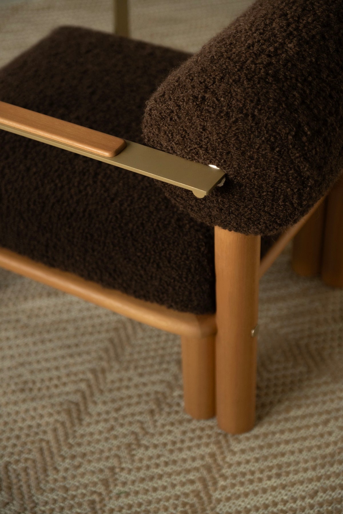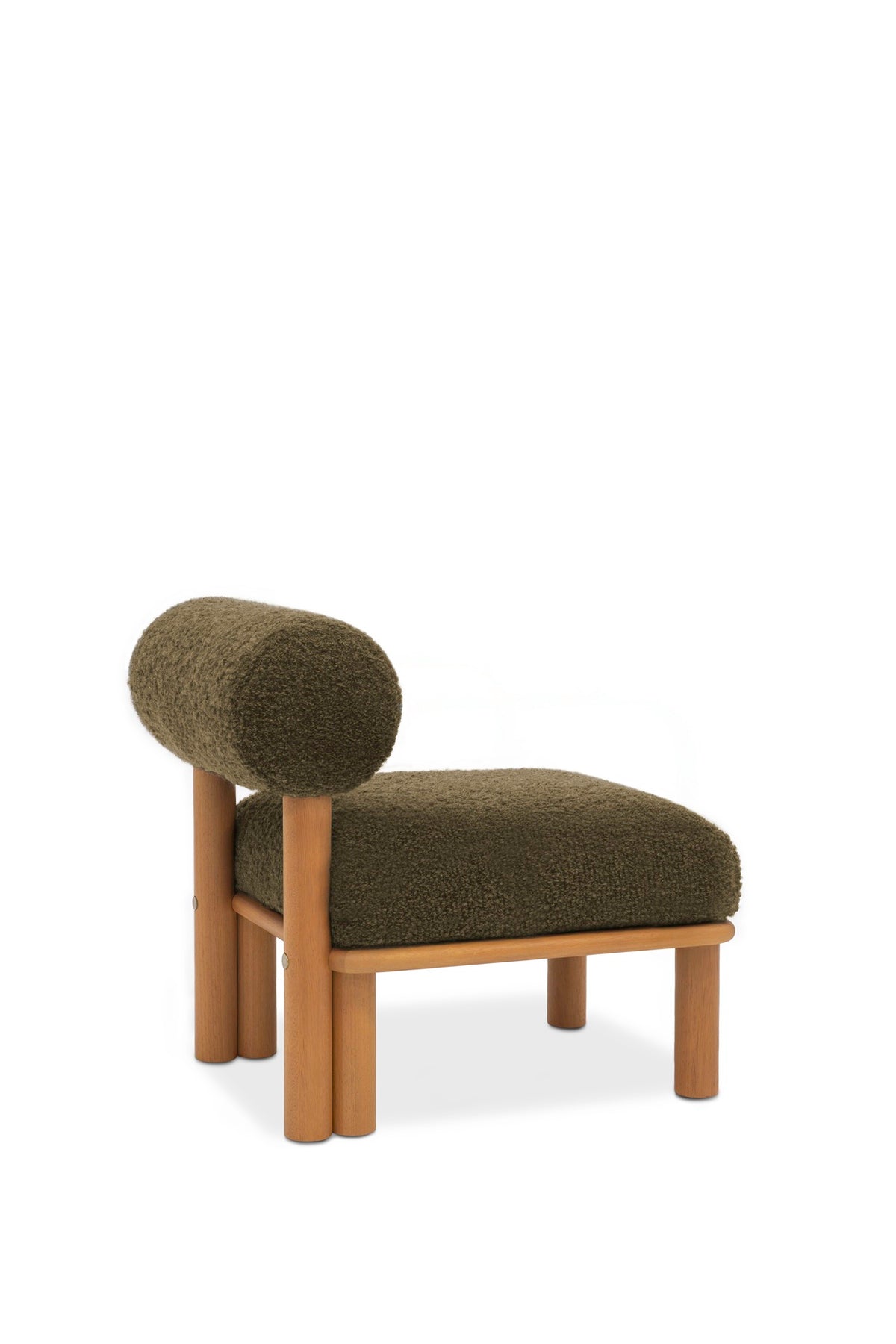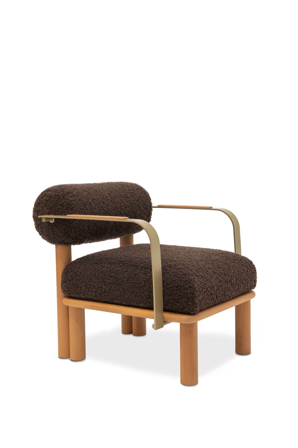 Maitha lounge chair is characterized by sturdy legs, a comfortable seat cushion and roll-shaped backrest. It is available in two versions, with or without armrests.