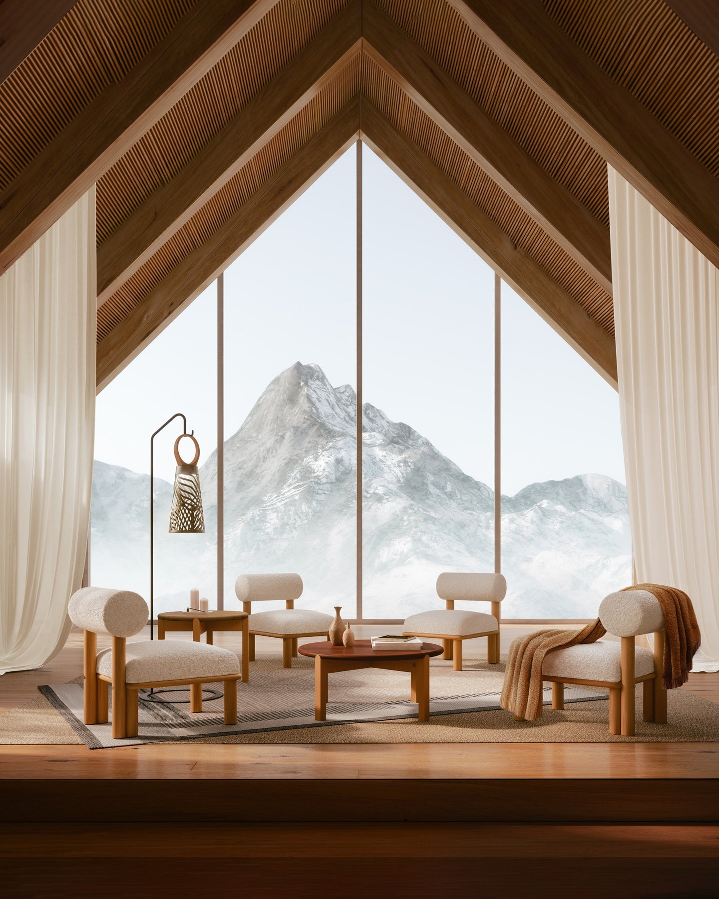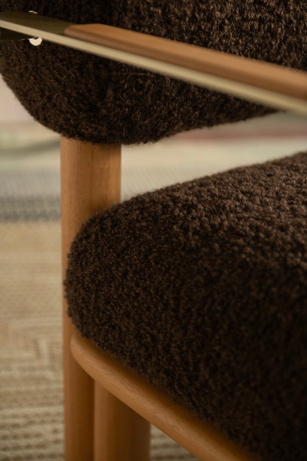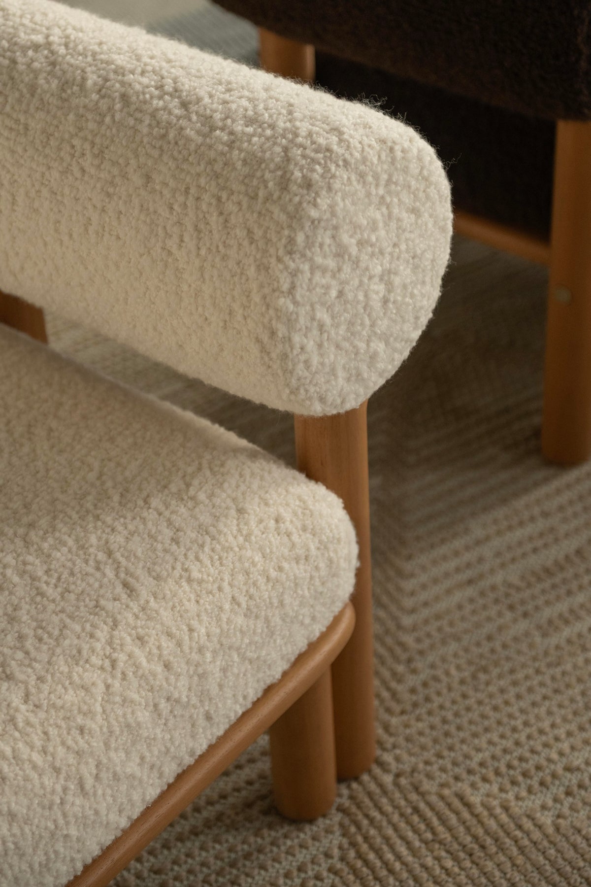 Maitha lounge chair is characterized by sturdy legs, a comfortable seat cushion and roll-shaped backrest. It is available in two versions, with or without armrests.
