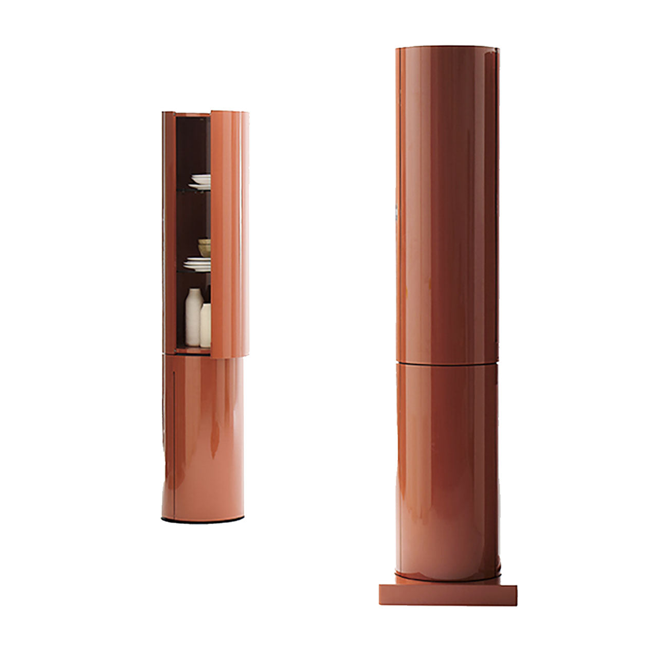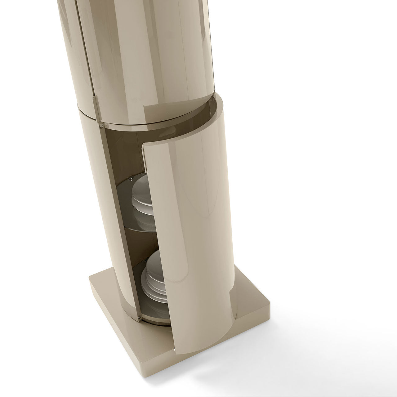 LA DORI is a minimal and essential circular container column, designed to captivate with its floating, support-free form. Its 360-degree design reveals its beauty and functionality from every angle, making it a standout piece in any space.