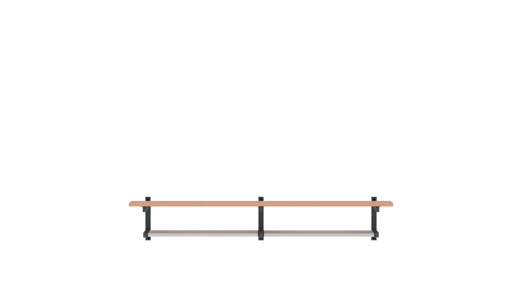 You can sit in style on the Tertio BW | BWS. The bench is simple to mount on the wall and available as standard in lengths of up to 3 metres. Tertio BW | BWS is part of the extensive Tertio cloakroom range, designed by Gerard Kerklaan. The various sizes of benches are particularly striking thanks to the characteristic powder coated steel frame in combination with the clear lacquered beech. Tertio BWS is equipped with a shoerack.
