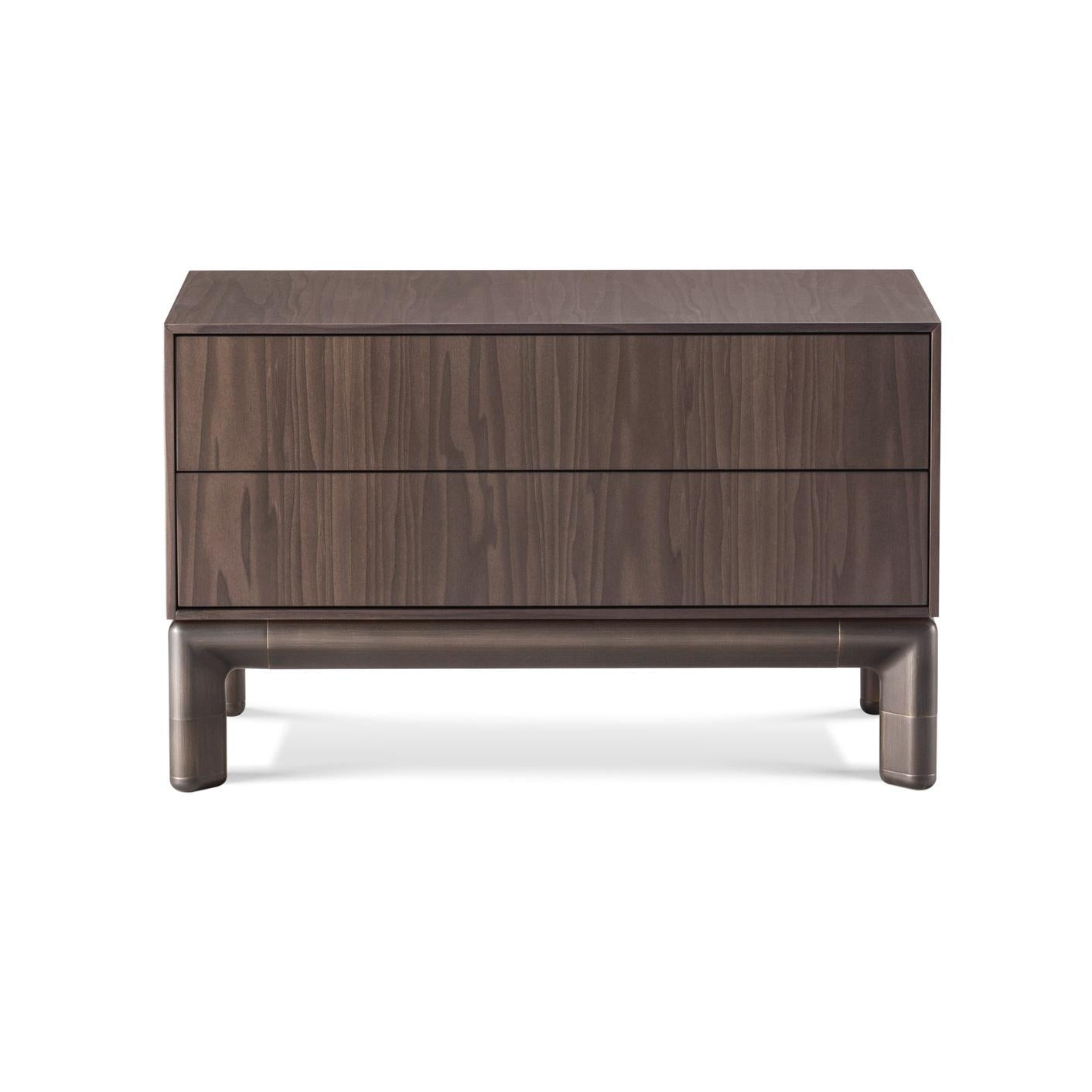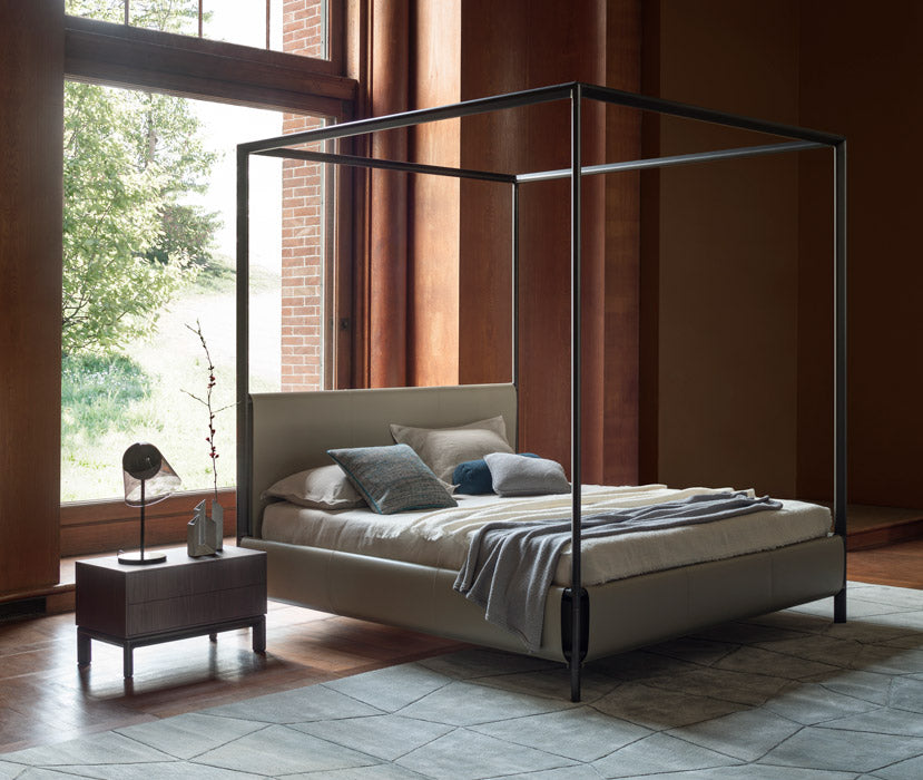 With their naturally elegant posture, the Frame bedside tables and chest of drawers bring a powerful and refined aesthetic into the bedroom. A minimal style characterizes the bedside tables, which are raised from the floor by the aluminum structure with casted joints.