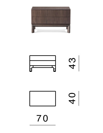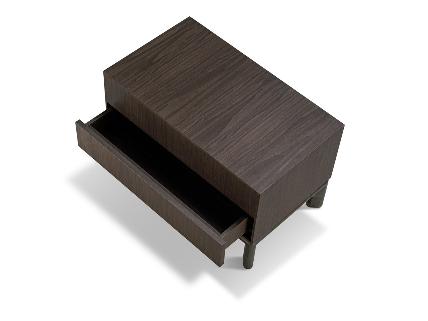 The Frame bedside table echoes the style and materials of the Frame Bed. It is available in one size - 70x40 cm H43 - with two very practical front drawers. In this case a simple structure based on Frame extruded aluminum profile and casted joints sustains a pure wooden monolith.