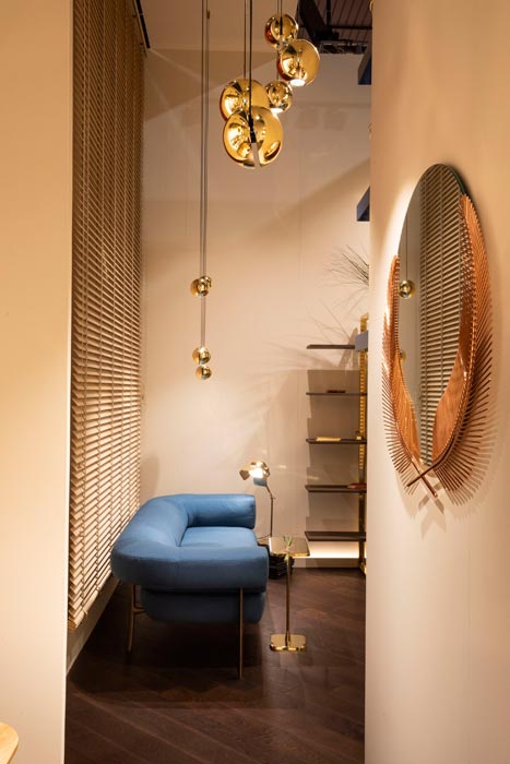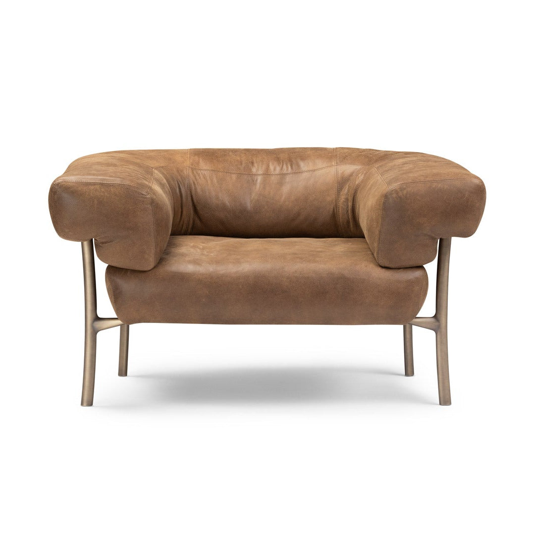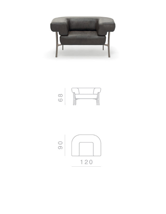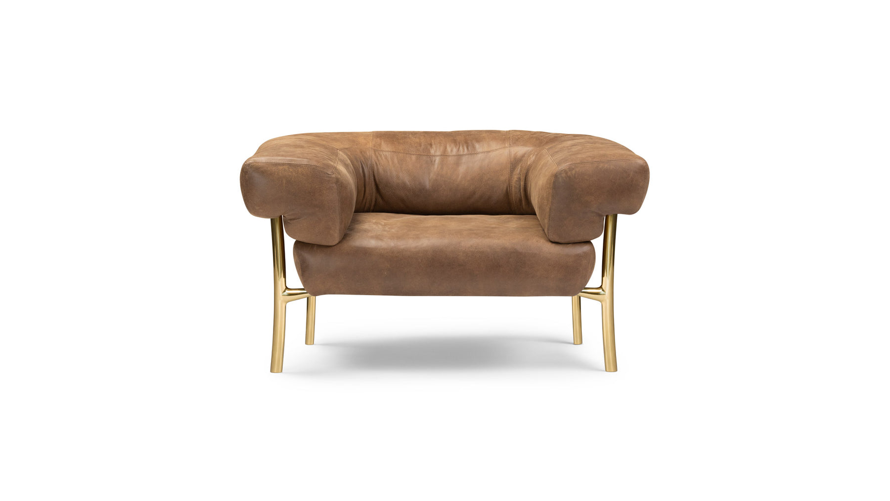The sofa and armchair is based on the Katana leg. The Katana leg is made of Italian brass, die casted in-house at Ghidini1961. Polished manually, and lacquered with transparent finish to guarantee a longlasting durability.