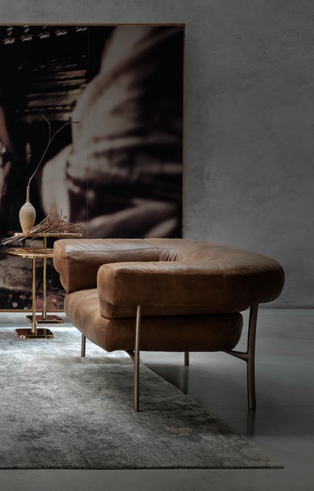 The sofa refers to the iconic and seductive shapes of the classic Chesterfield, reinterpreted with renewed elegance, and thanks to the gentle curvature of the leg it resolves the connection with the seat and the back. This makes it enveloping and comfortable, its height and width support a relaxed sociability.
