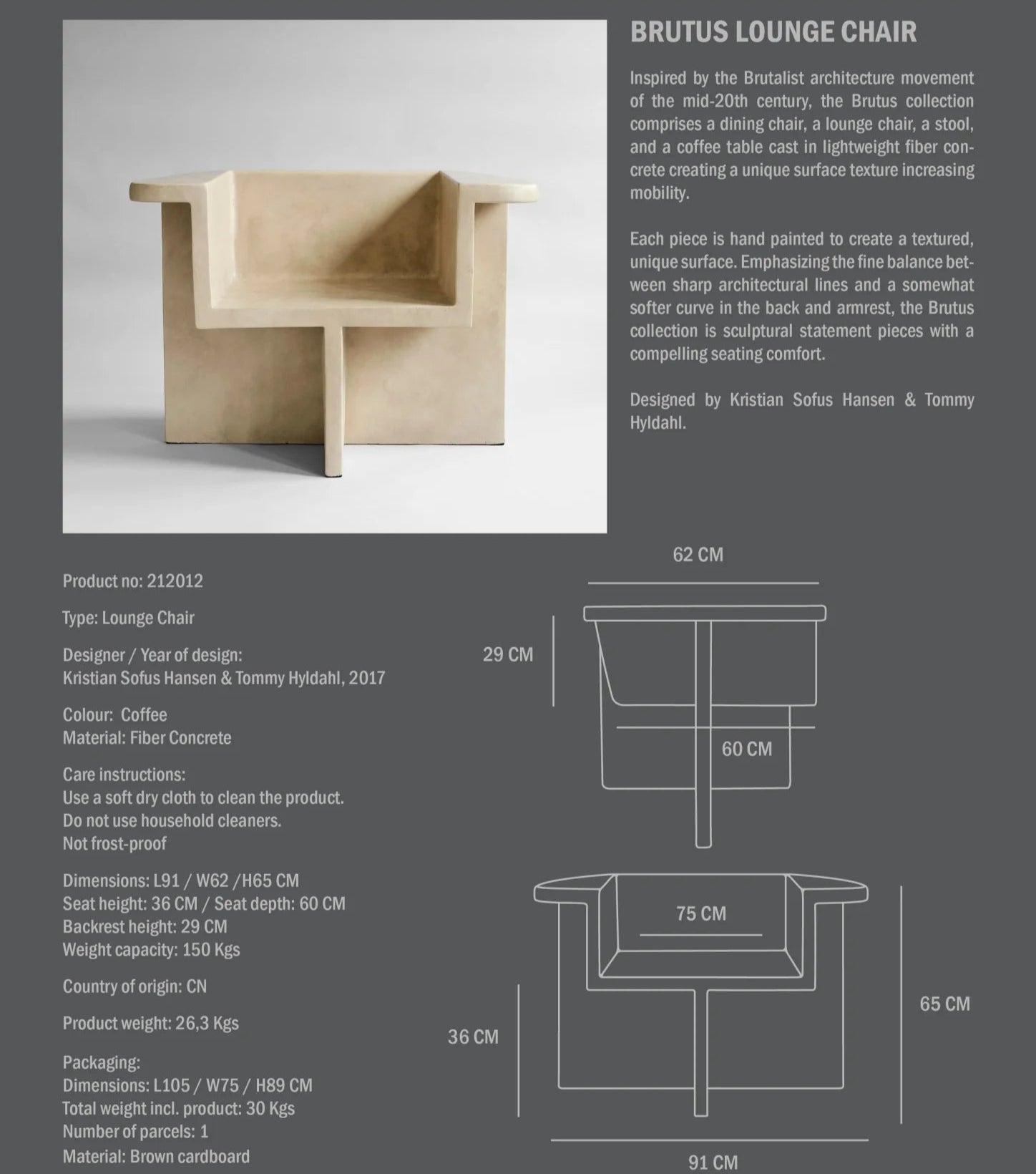 Dimensions: L91 / W62 /H65 CM
