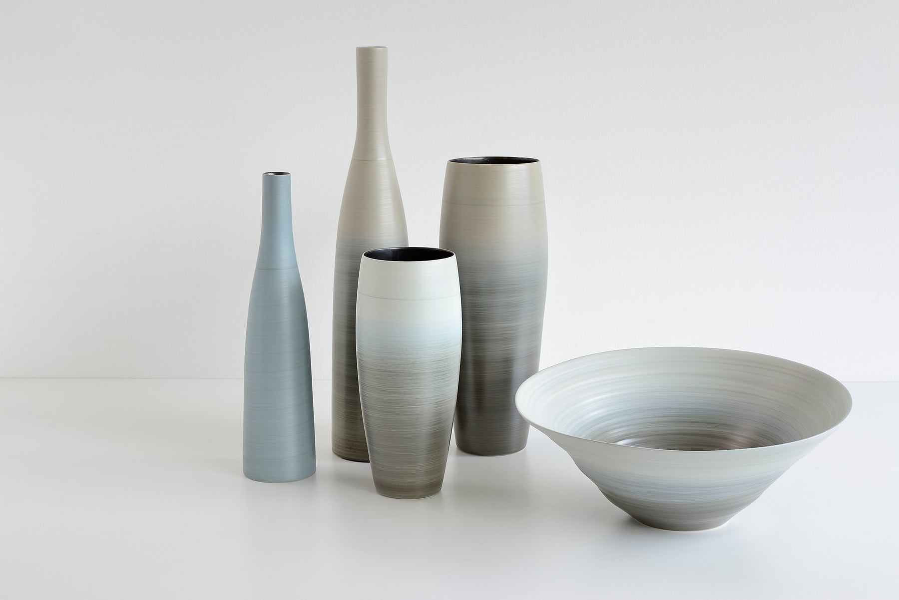 The Bottiglie collection by Rina Menardi reinterprets the traditional bottle form with sculptural elegance and artistic restraint. Handcrafted in Italy, each ceramic bottle is unique—defined by clean lines, soft matte textures, and a refined color palette. Stripped of excess detail, these vessels become quiet yet powerful design objects that speak to Menardi’s philosophy: beauty through simplicity, and emotion through form. Bottiglie can stand alone or in groups, bringing harmony and artisanal depth to any space.
