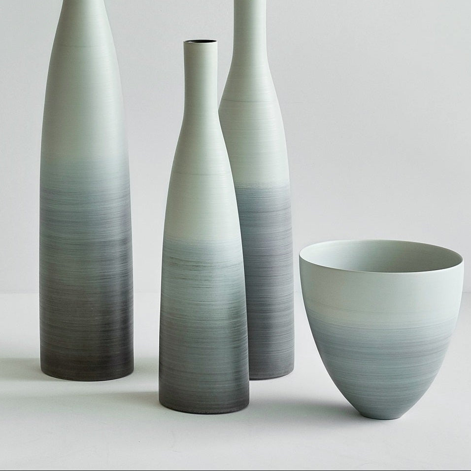 The Bottiglie collection by Rina Menardi reinterprets the traditional bottle form with sculptural elegance and artistic restraint. Handcrafted in Italy, each ceramic bottle is unique—defined by clean lines, soft matte textures, and a refined color palette. Stripped of excess detail, these vessels become quiet yet powerful design objects that speak to Menardi’s philosophy: beauty through simplicity, and emotion through form. Bottiglie can stand alone or in groups, bringing harmony and artisanal depth to any space.