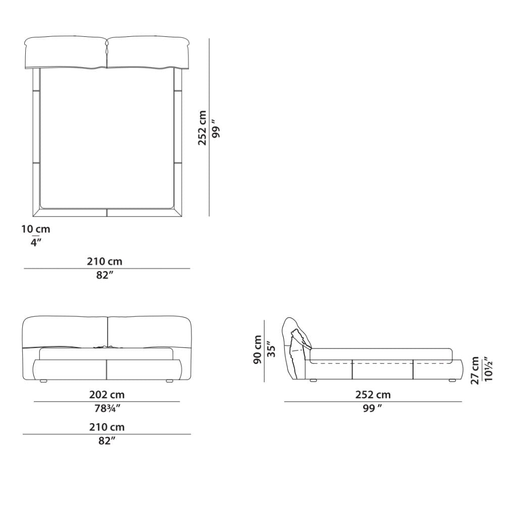 Designed by Paola Navone for Baxter, the Casablanca bed stands out for the refined simplicity of its forms. Its informal and relaxed design is made irresistibly inviting by the soft padding and luxurious leather upholstery. Spacious and elegant, the bed features a structure crowned by a generous headboard that folds down to form two large pillows, offering the perfect support for sleeping, reading, or simply unwinding in total comfort.