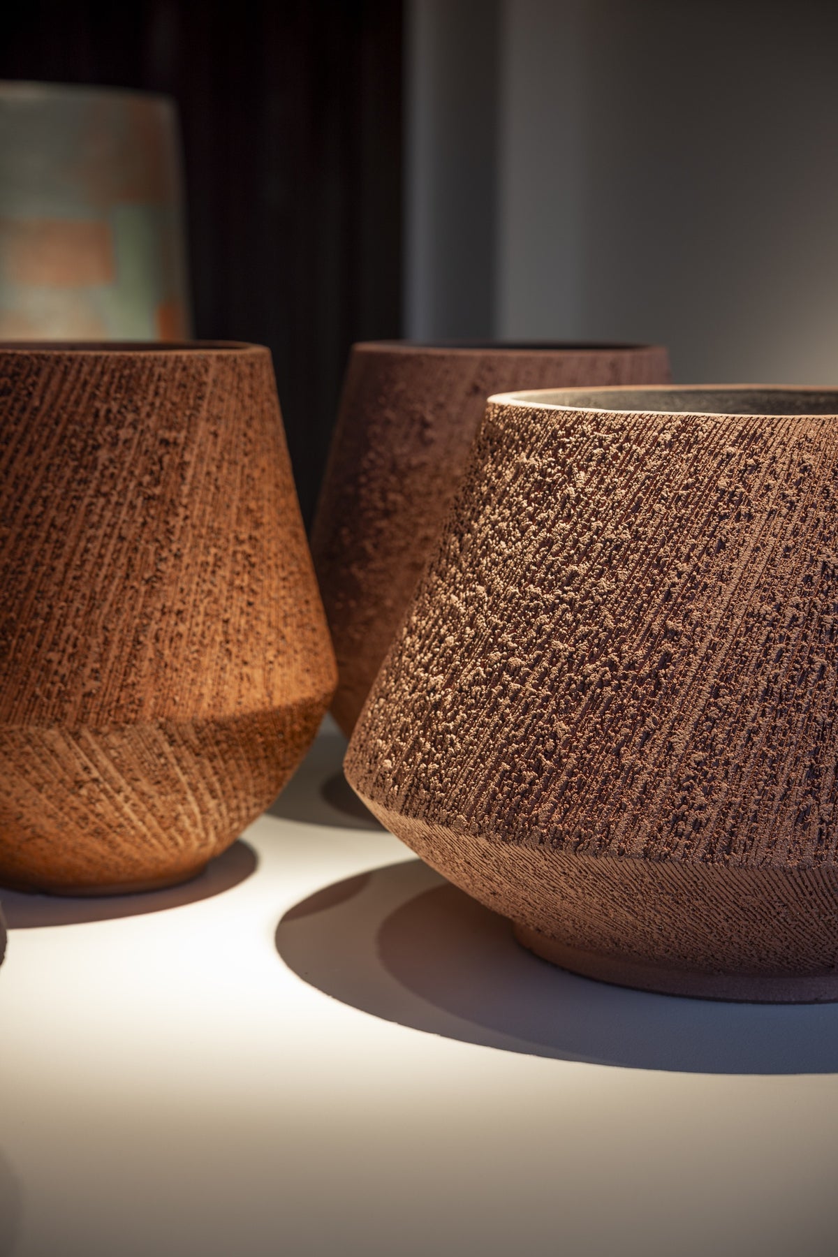 The SP collection by Atelier Vierkant is distinguished by its strong, rounded form and subtle, hand-finished textures. Handcrafted in Belgium from high-fired clay, each piece reflects the artisanal quality and natural variations that make every planter unique. With its generous proportions, SP works beautifully as a standalone statement or in grouped arrangements, both indoors and outdoors. Its timeless design and earthy finishes bring a sculptural presence and understated elegance to any contemporary or classic space.
