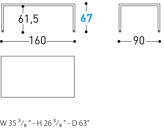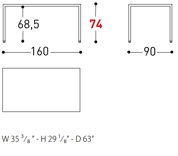Powder coated aluminum structure with top in HPL or ceramic, weatherproof and UV light resistant.