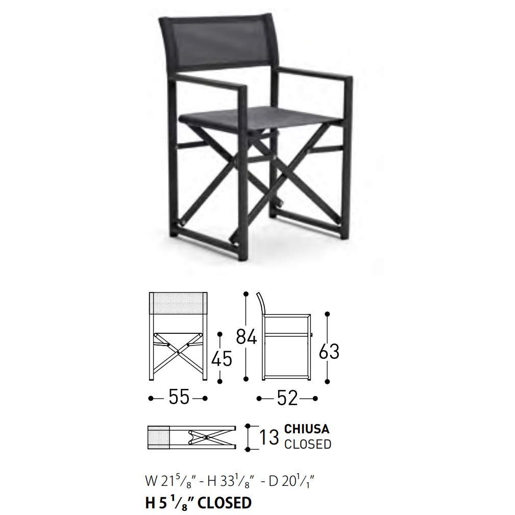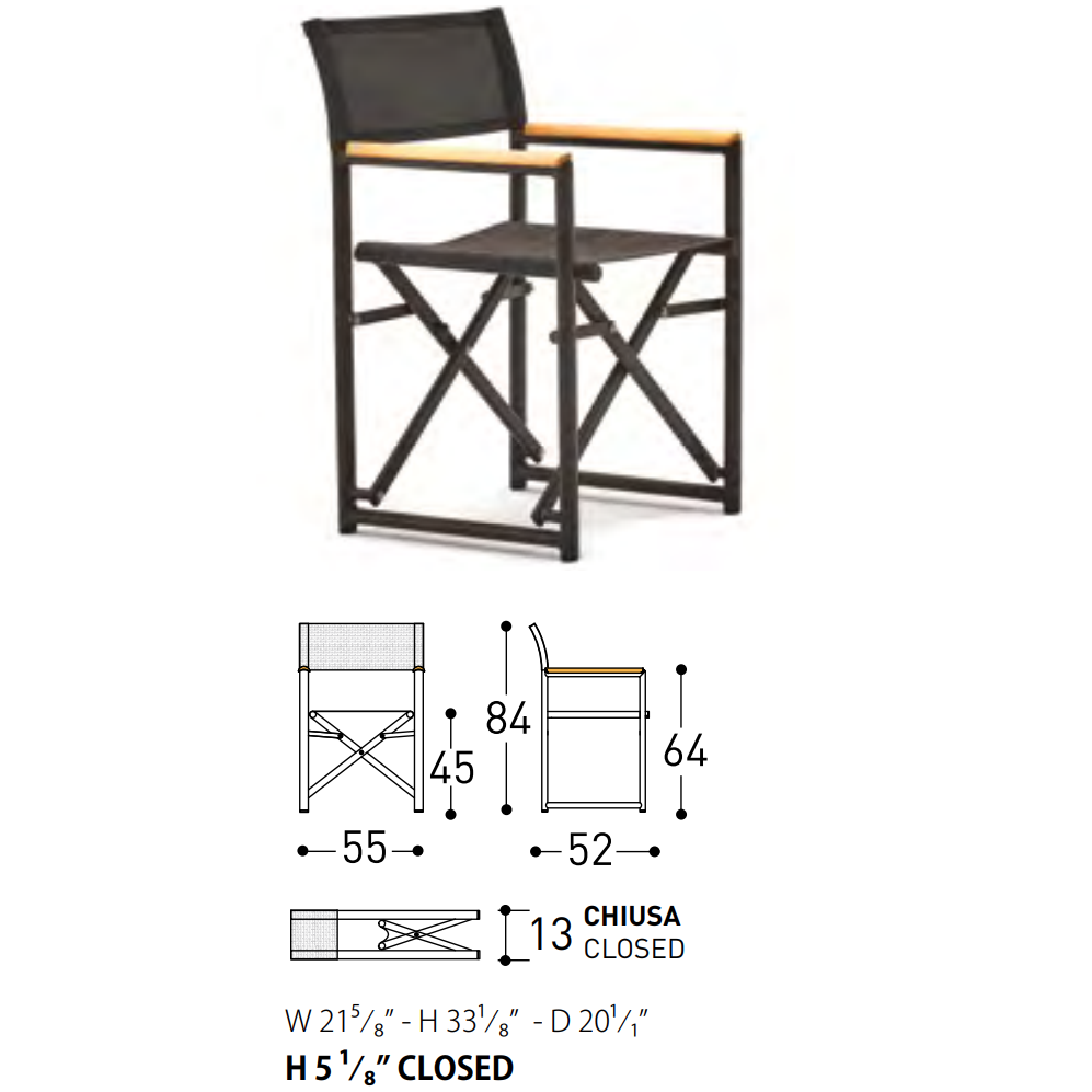 A classic design for and elegant and versatile seat. Victor director’s chair takes shape from simple and regular lines, designed to ensure comfort and relaxation outdoors, in residential and contract environments. The seat and backrest are available in quilted fabric or batyline, while the armrests can be customized with teak wood, to give a refined and modern touch. When not in use, the foldable chair with arms Victor, can be folded and stored.