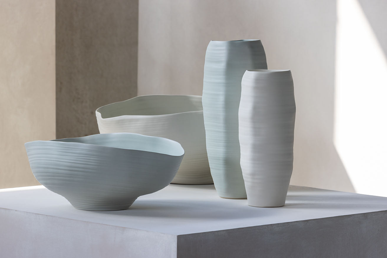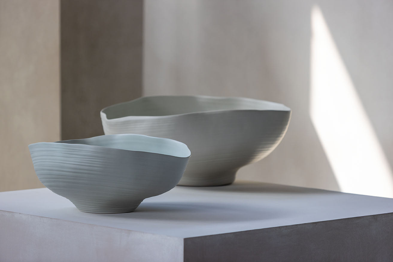 The Fonti collection by Rina Menardi is a sculptural exploration of natural springs and sources of life. Handcrafted in Italy, each piece features organic, flowing forms and a soft matte finish that evoke a sense of movement, renewal, and quiet strength. Fonti reflects Menardi’s deep connection to nature and her mastery of transforming simple shapes into objects of emotional resonance and timeless beauty. Each piece invites calmness and contemplation, enriching any space with its serene presence.