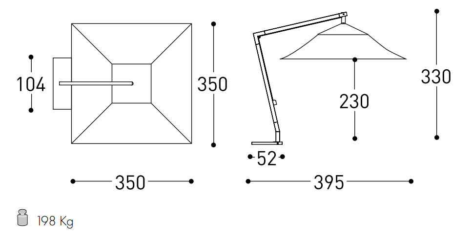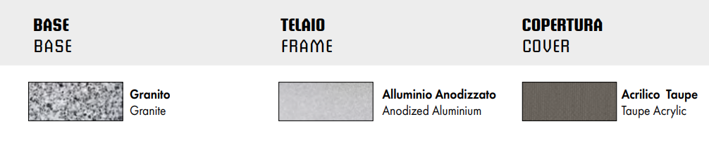 Slim and dynamic, the Copacabana umbrella offers a pleasant and refreshing shelter from the sun. The robust aluminum and stainless steel structure finds stability thanks to two 65 kg weights placed at the base.