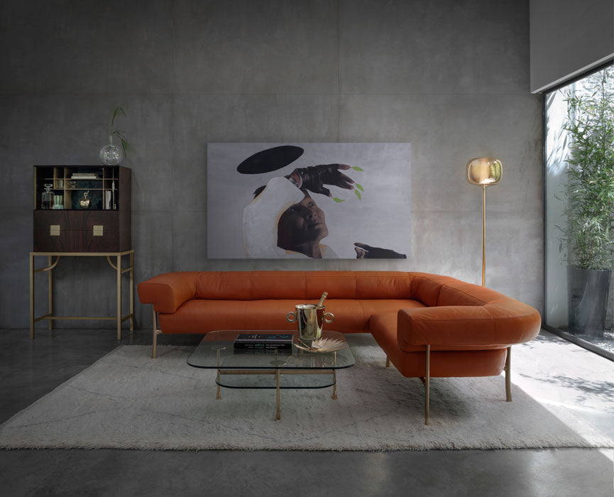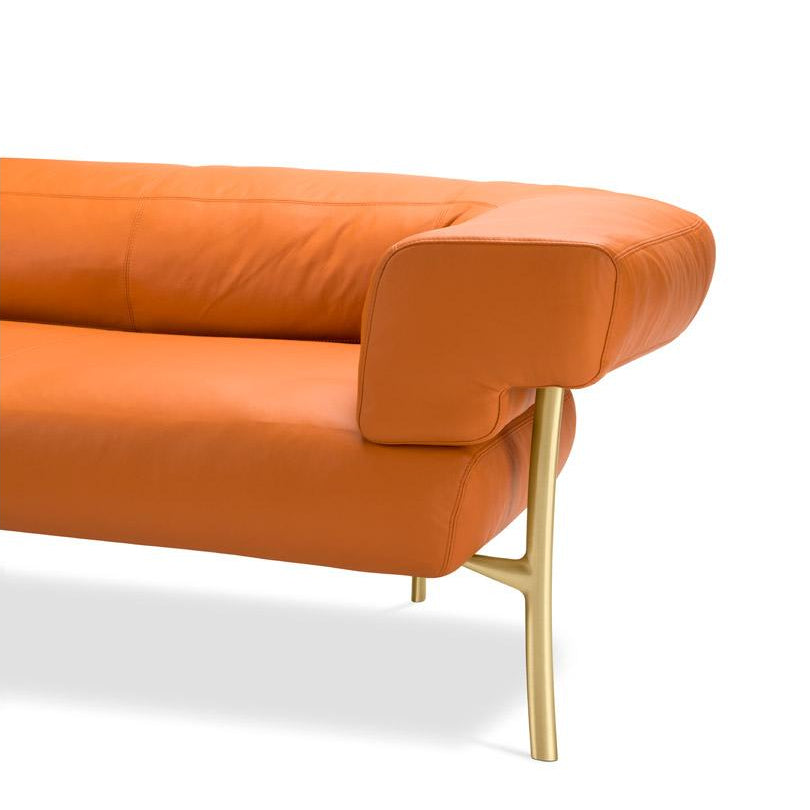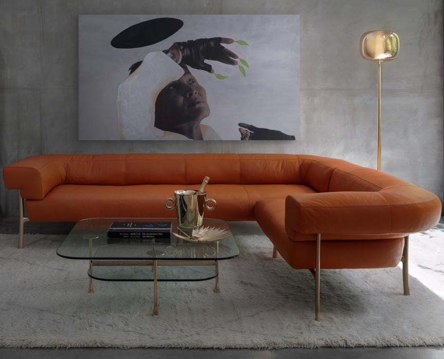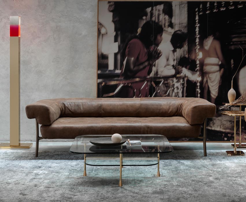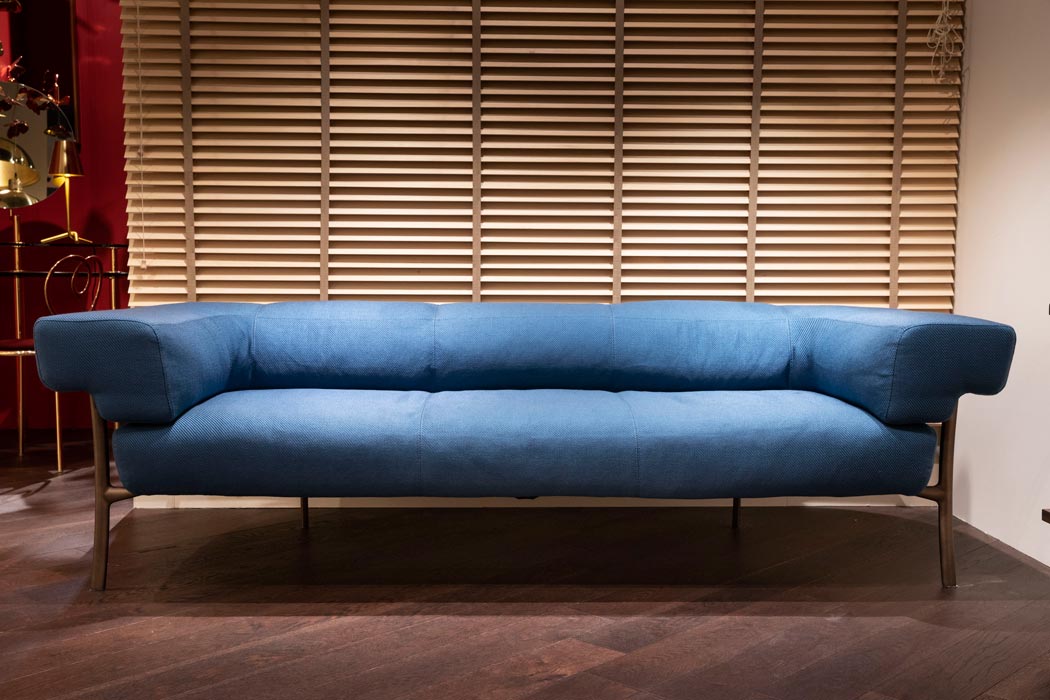 The sofa refers to the iconic and seductive shapes of the classic Chesterfield, reinterpreted with renewed elegance, and thanks to the gentle curvature of the leg it resolves the connection with the seat and the back. This makes it enveloping and comfortable, its height and width support a relaxed sociability.