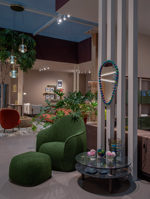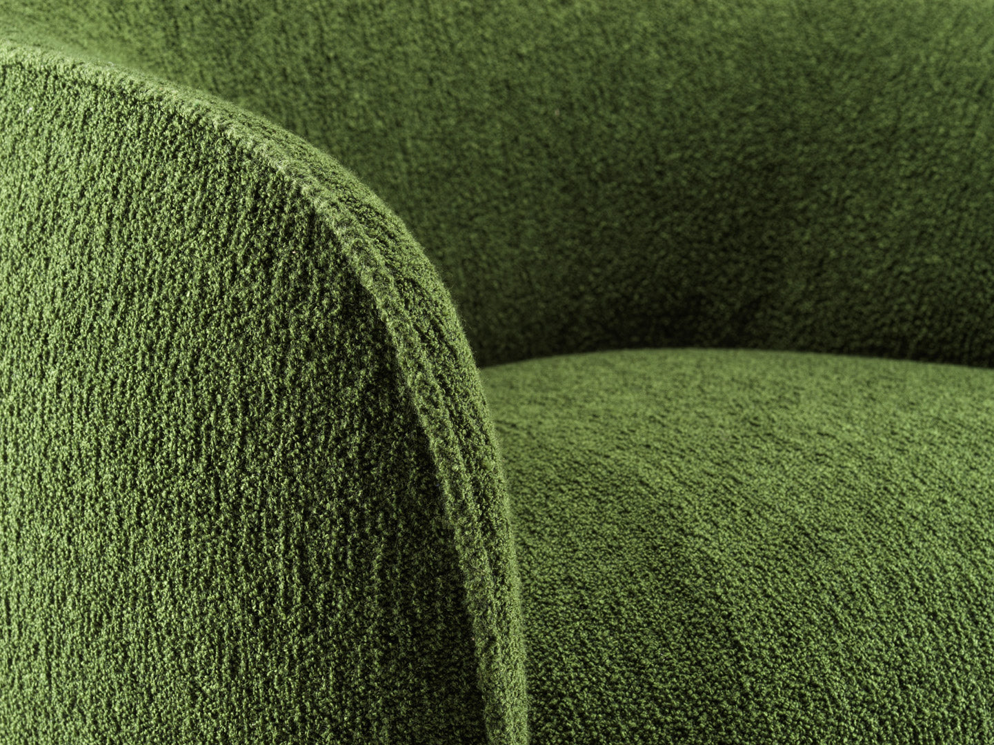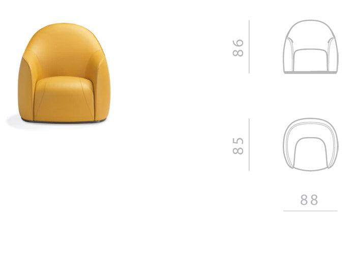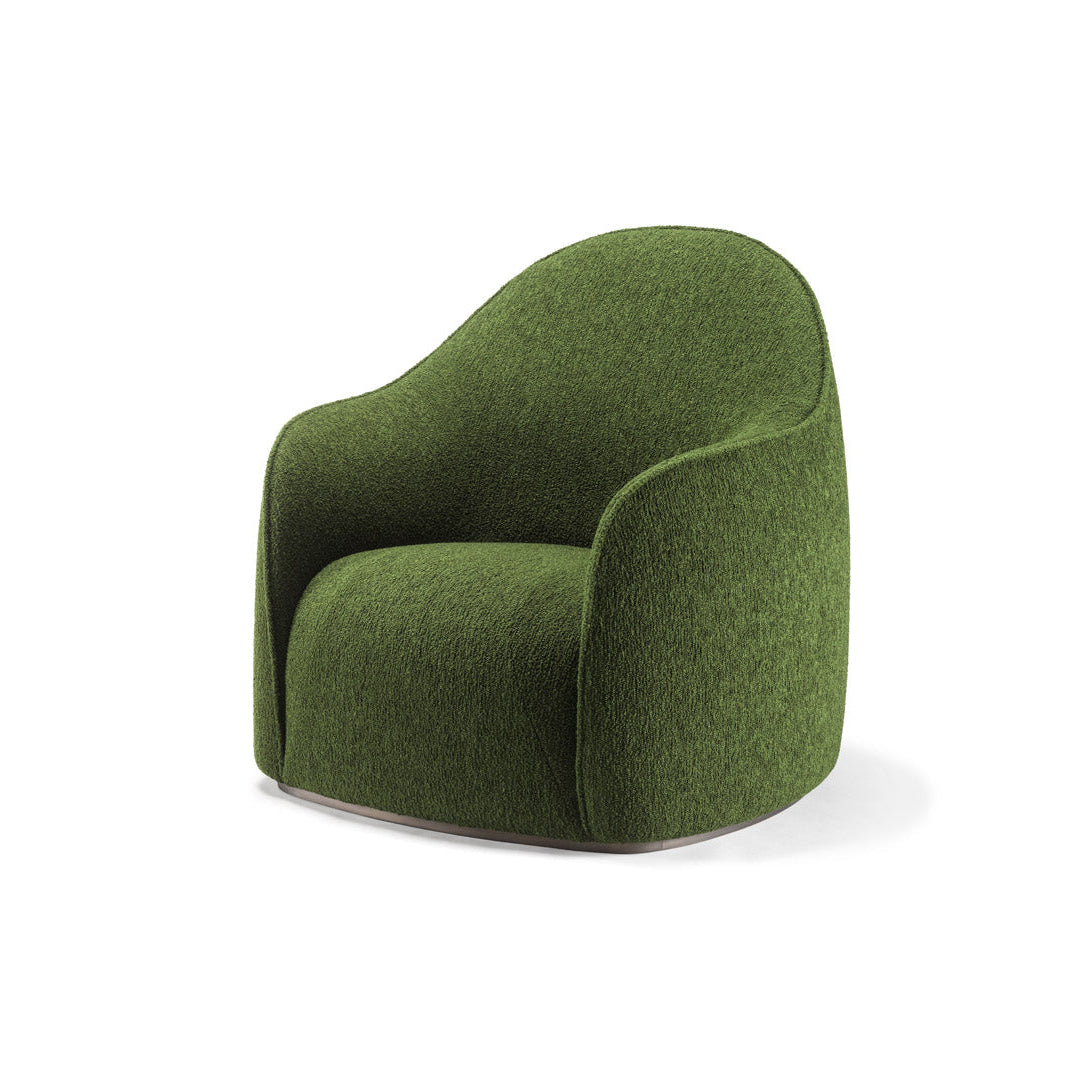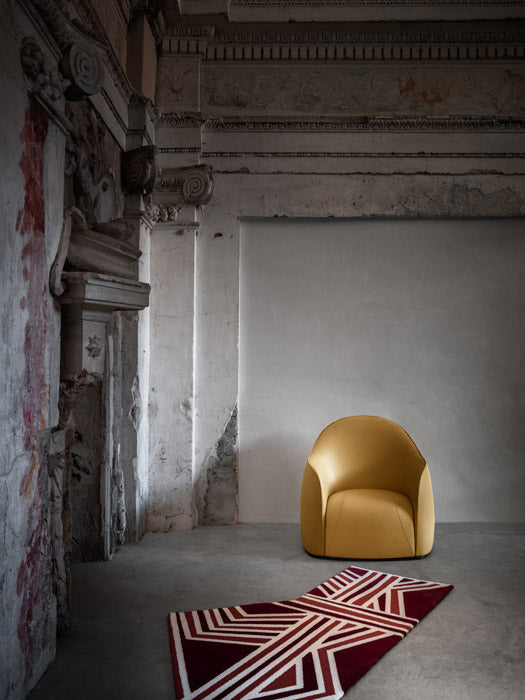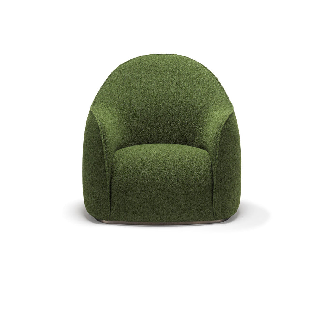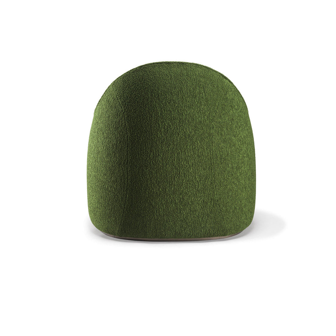 The design of the armchair takes place by subtracting material from a full spheroidal shape, as if a large spoon created a seat inside a yeasted cake.