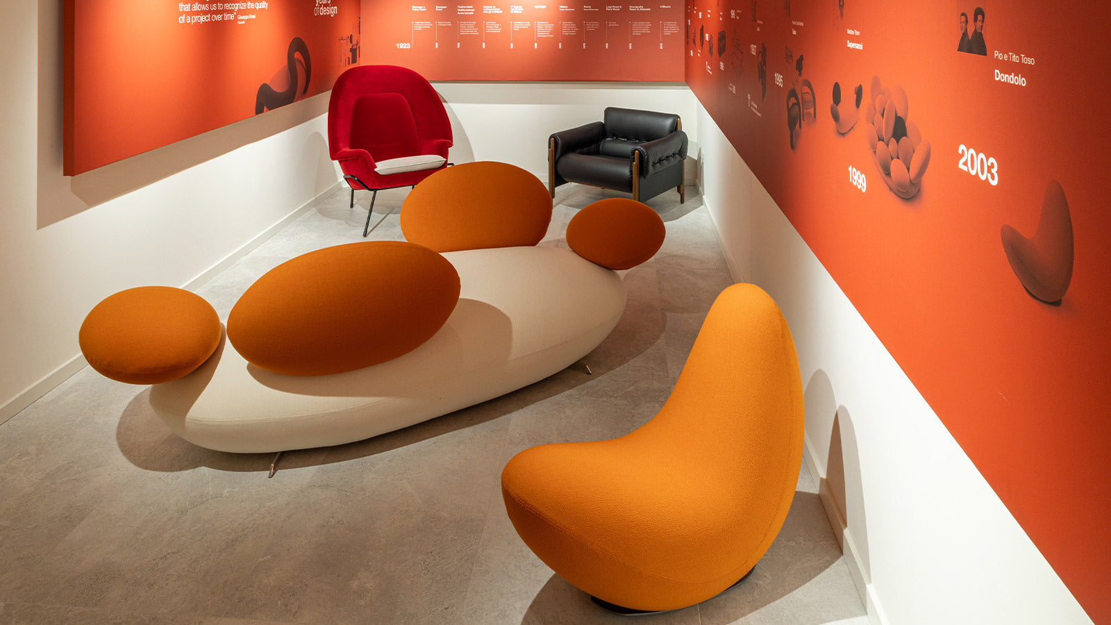 Dondolo is a friend, a companion that stimulates a personal and unique way of experiencing sitting: as we merge with its curves, we experience a moment of freedom and naturalness. It arises from a search for harmony that is almost musical, a form that transports us back in time.