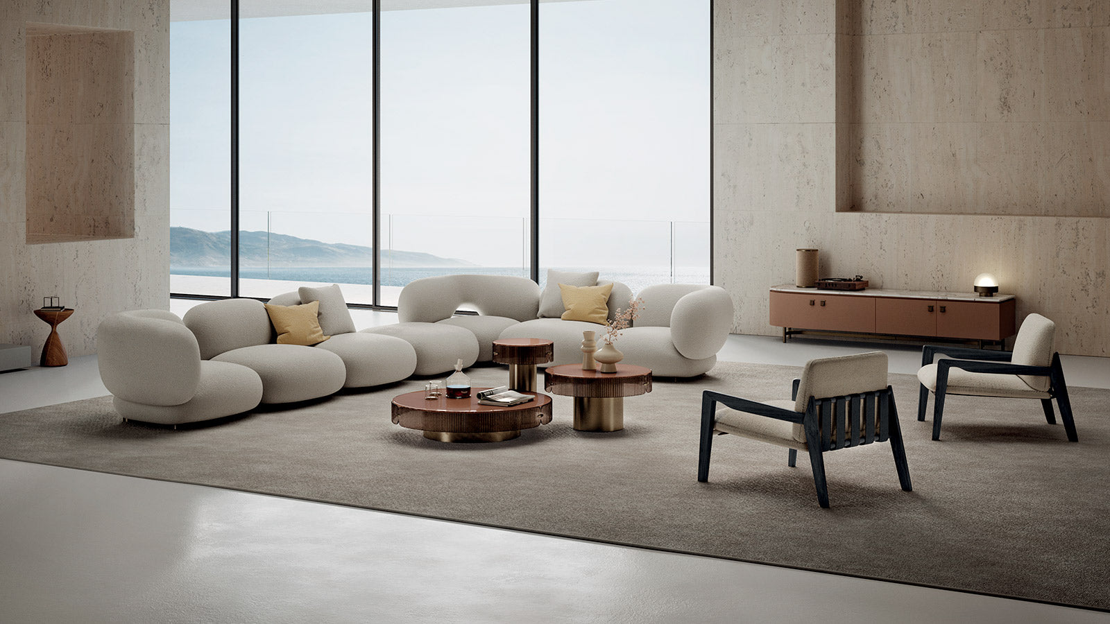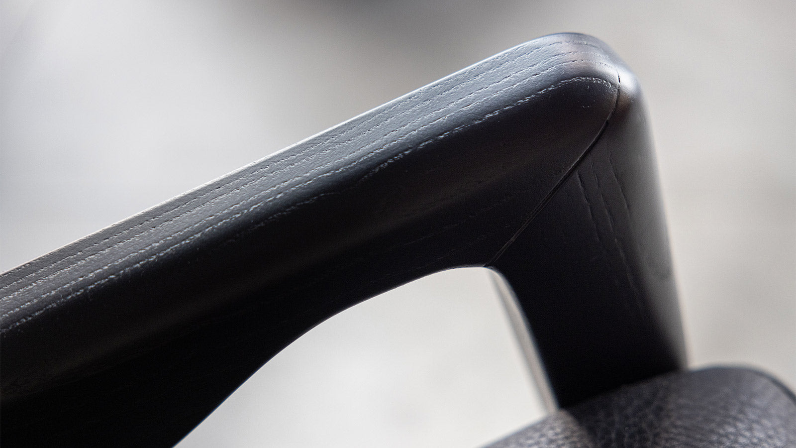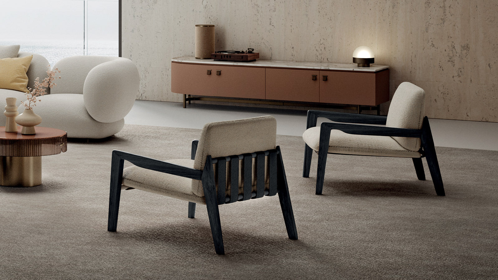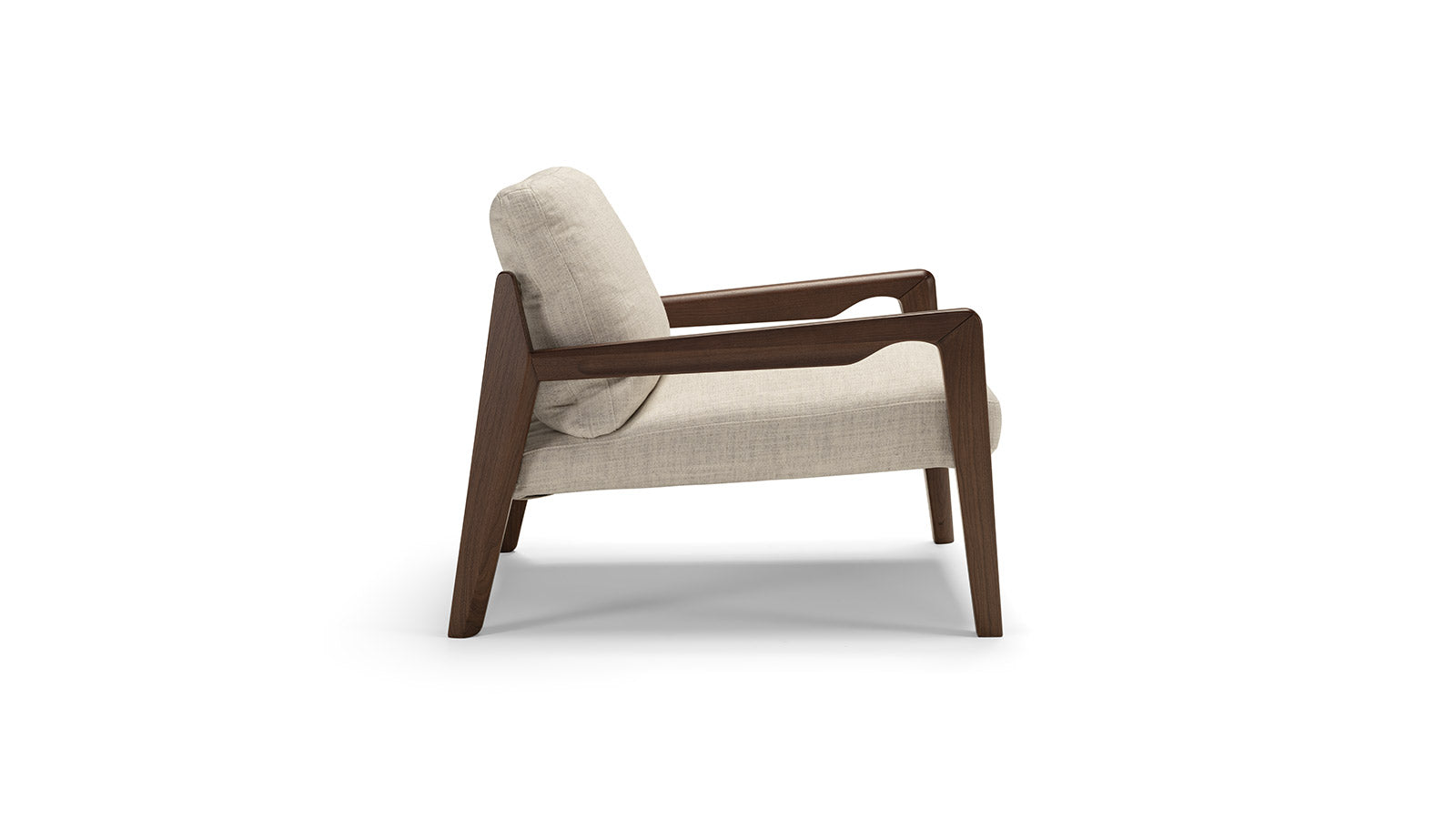 The concept of the Olimpia armchair is sophisticated and innovative, reminiscent of models from the 1930s and 1950s. It features pleasingly detailed design, from the snappy wooden legs to the straps.