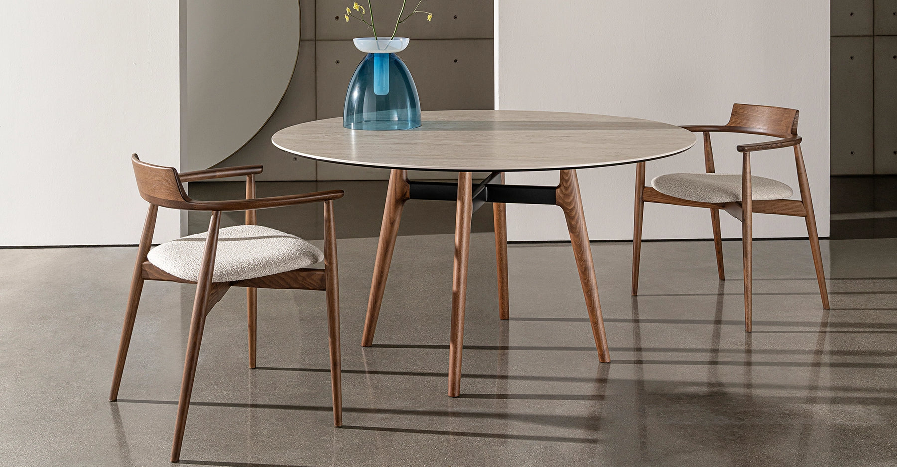 A subtle line, a gesture suspended between air and matter. This chair is a perfect balance between lightness and strength, between presence and absence. Its discreet embrace and sinuous shapes touch the space without weighing it down. The carefully shaped wood tells a timeless design story.