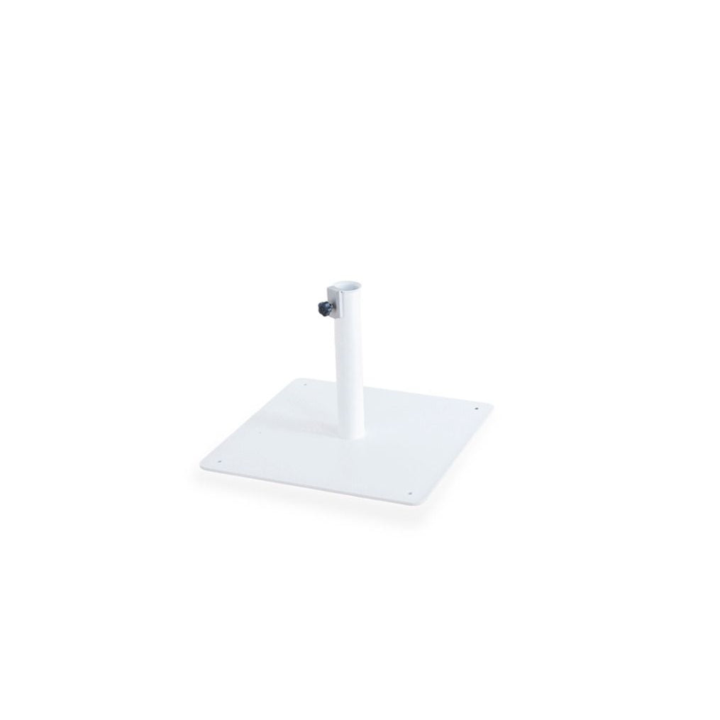 The Riviera umbrella base 62 x 62 cm ensures stability and durability thanks to its sturdy iron structure, making it ideal for securely supporting your garden umbrella. Equipped with a 48 mm diameter sleeve, it is designed for a firm and reliable fit, perfect for outdoor environments. Available in elegant white and graphite finishes, it blends seamlessly with any outdoor space, providing practical and discreet support without compromising on style.