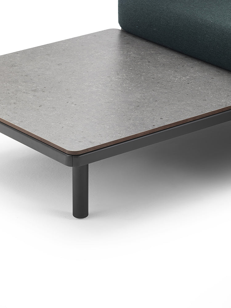 With its elegant and modern shapes, it integrates perfectly with the other pieces of furniture from the same collection, turning the gardens in comfortable open air living spaces.