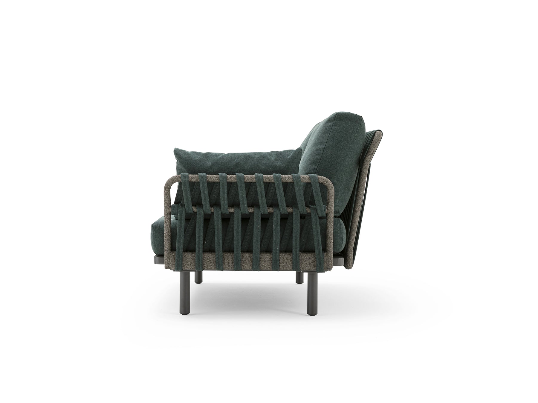 Our new Emma Cross, designed for who loves spending time outdoors without giving up comfort, is made of a welcoming seat which can embrace more than one person at a time and a practical coffee table, a useful space where to rest books, drinks and sunscreens.