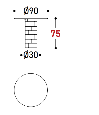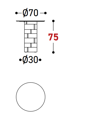 The Gianna Coffee Table / Central Stem Table / Table is characterized by a cylindrical structure in aluminum, the perfect material for outdoor environments, wrapped in an elegant mat covering, available in the Desert and Ghisa colors. The circular tops, of various sizes, are available in both Hpl and bush-hammered ceramic.