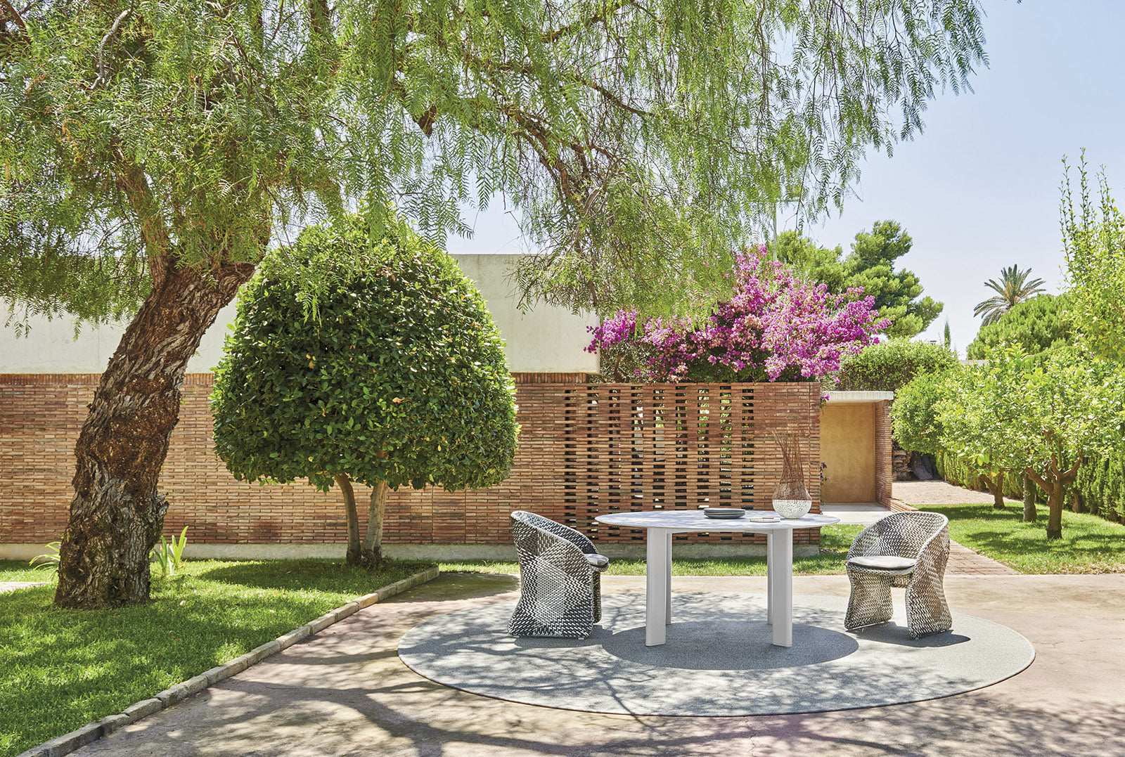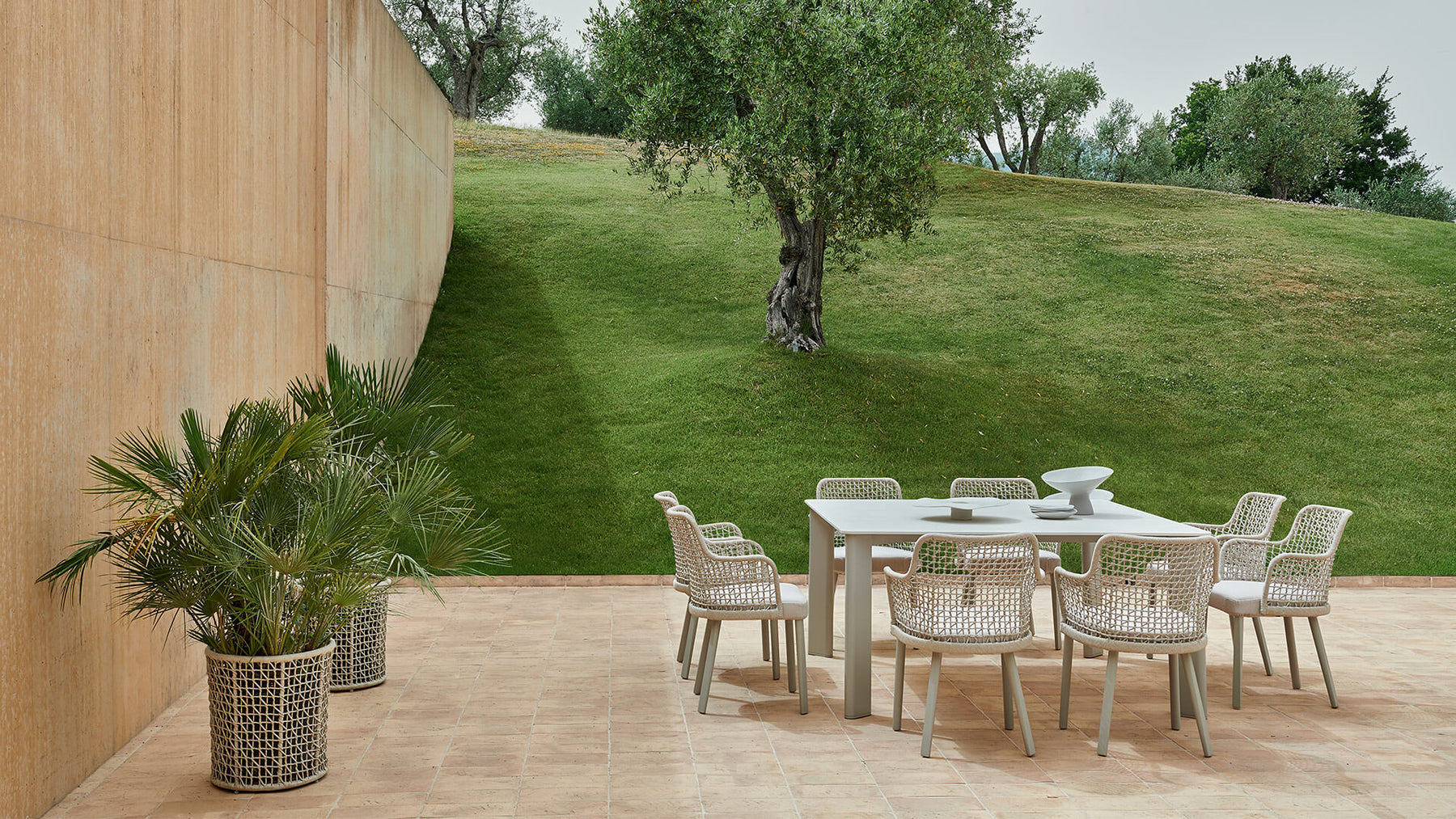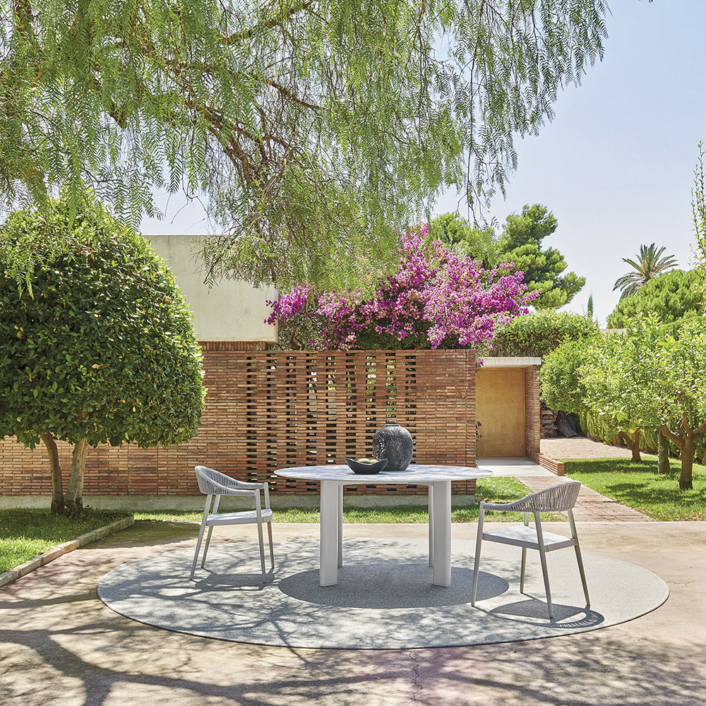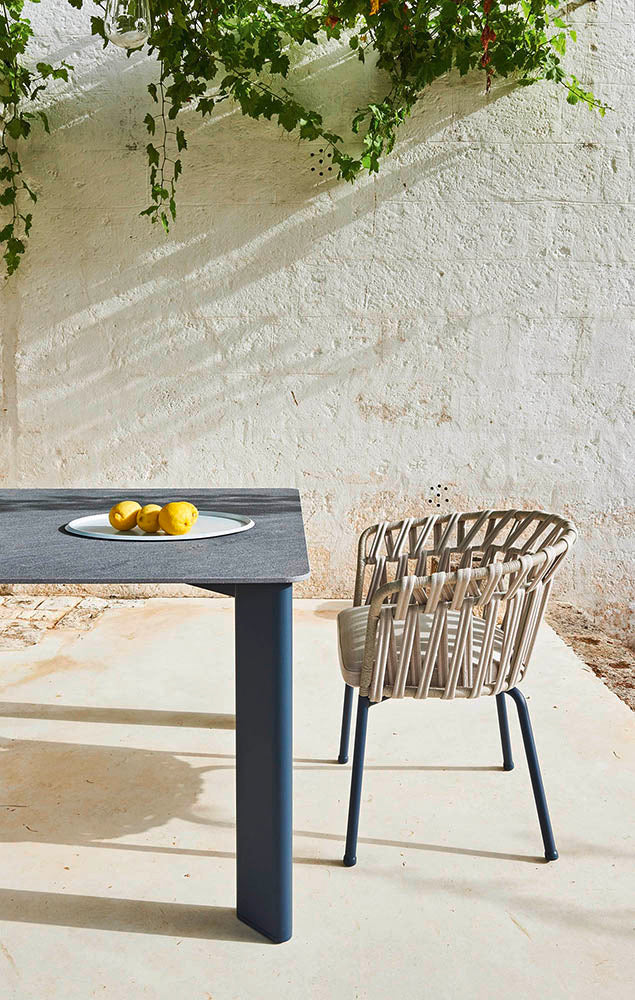 Thanks to its versatility, the Plinto table furnishes gardens, terraces, balconies or verandas in residential and contract settings.