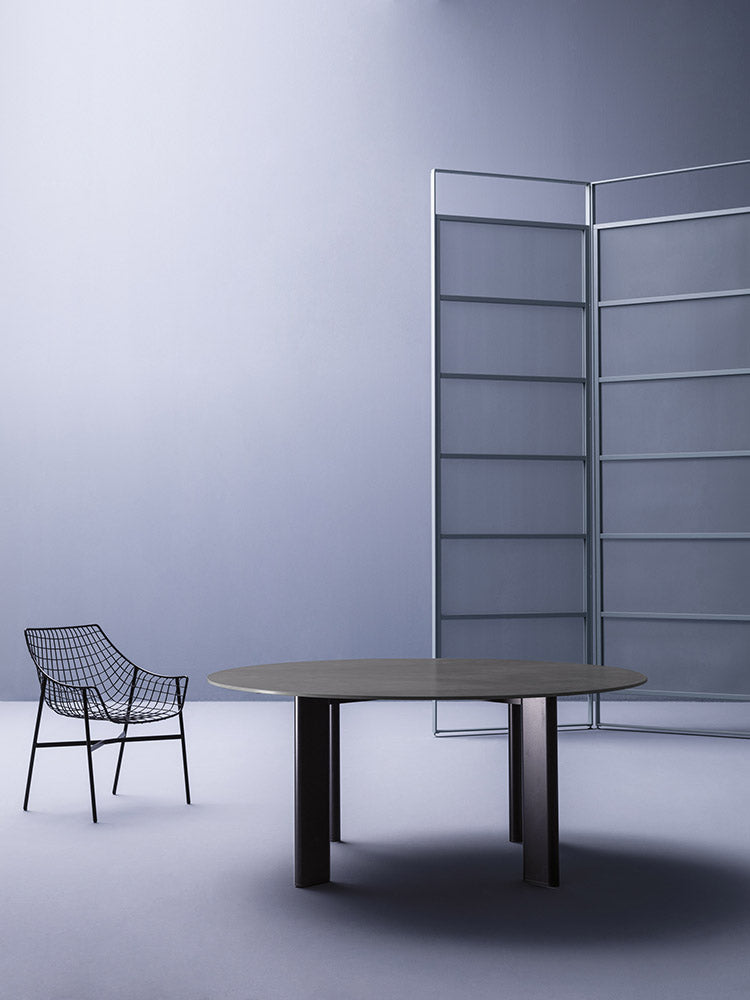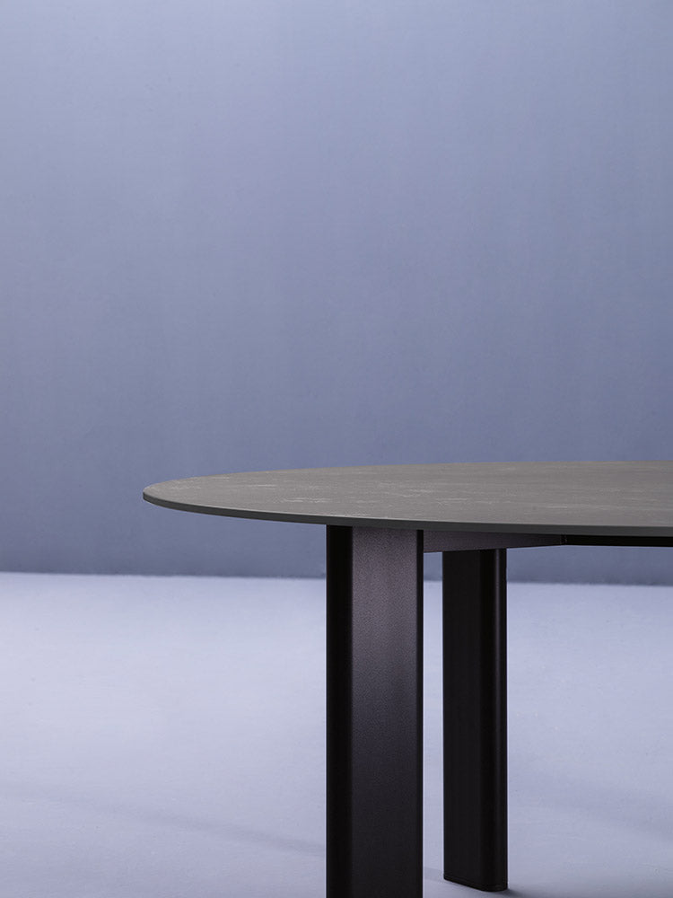 Elegance and essentiality find a new expression in the Plinto table, a proposal designed for the outdoor dining area which is characterized by the particular design with elliptical legs.
