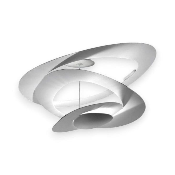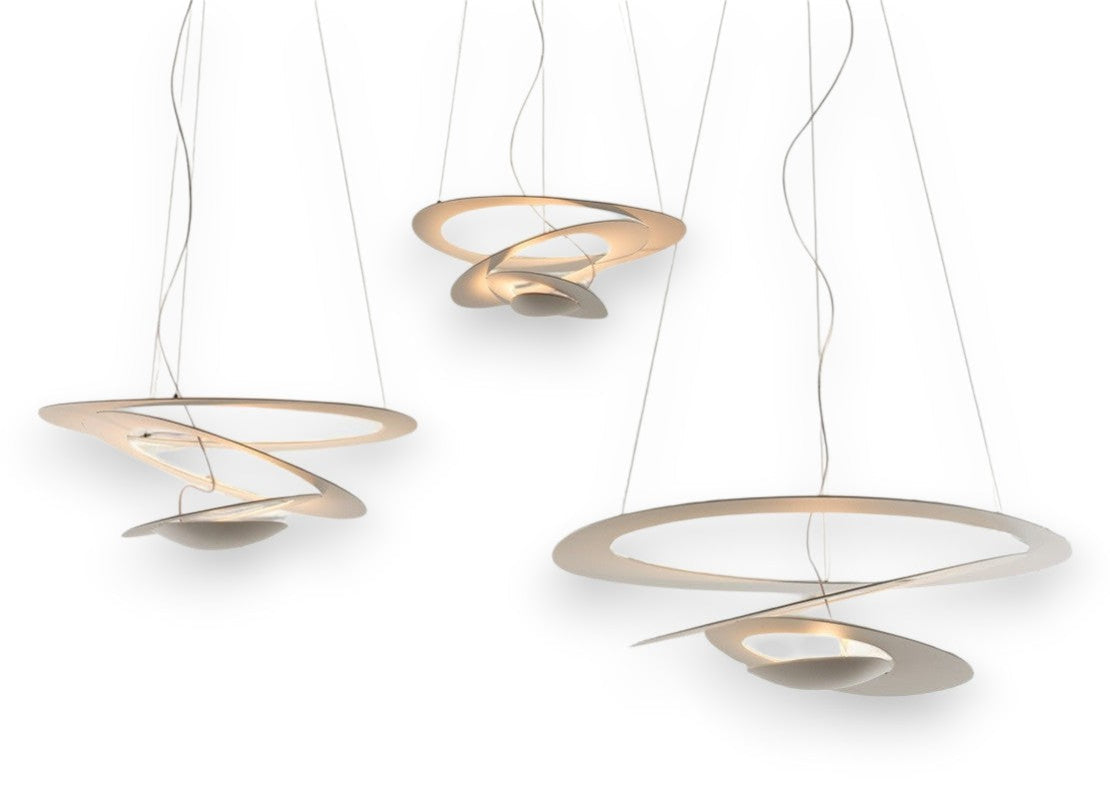 The award-winning Pirce lamp is one of Artemide’s best-selling designs. Originally introduced in a halogen version, it has been reimagined with an advanced LED light source that ensures both energy efficiency and high-quality illumination. More than a lamp, Pirce serves as a striking decorative element with a sculptural presence. Its delicate thin disc unfurls into flowing vortices that spiral gracefully downward, creating mesmerizing light effects whether lit or unlit.