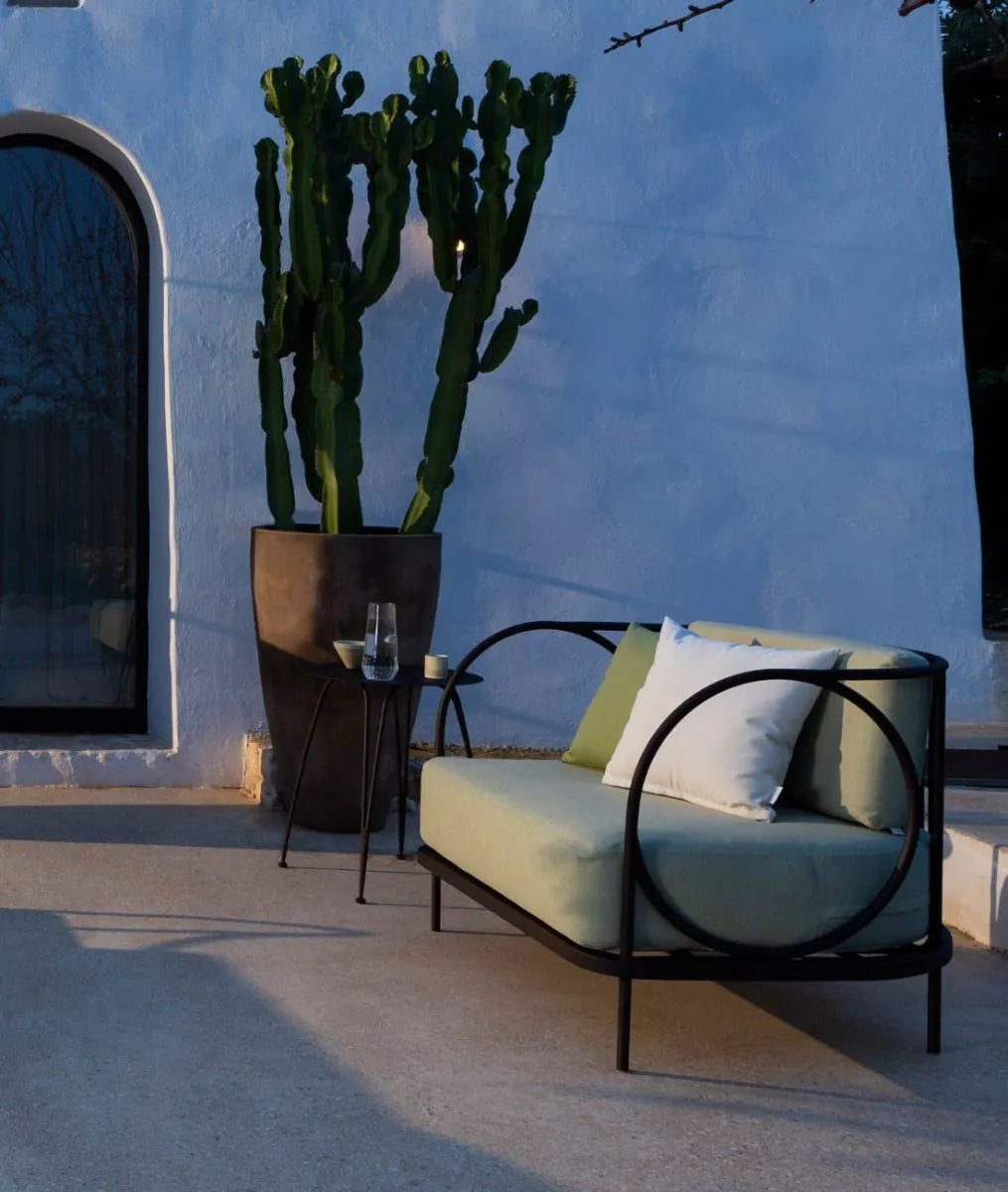 The image of a set of wrought iron outdoor sofas might immediately evoke a classic and romantic setting. Ariete takes it a step further, showcasing a variety of modern elements without sacrificing the timeless beauty conveyed by tradition. The Ariete furniture line is crafted entirely from cold-galvanized wrought iron, ensuring robustness and durability, based on exclusive designs by Adam Tihany. These generously sized pieces are perfect for creating an outdoor lounge area, ideal for hosting elegant dinners or enjoying convivial moments under the summer sky. The bronze color that characterizes them echoes the warmth of sunlight, adding an even more welcoming touch to the spaces these pieces enrich.