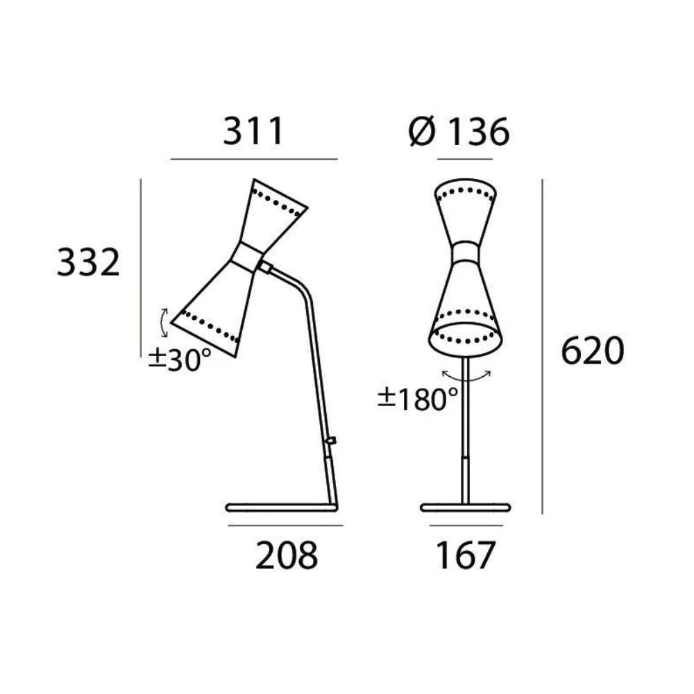 Megafono is a timeless icon from the 1950s, designed to deliver both direct and indirect lighting. Its distinctive double-cone lampshade is fully adjustable, providing directional light with intuitive elegance. Paired with a refined electroplated gold-plated brass stem, the lamp embodies retro sophistication while remaining perfectly suited for contemporary interiors.