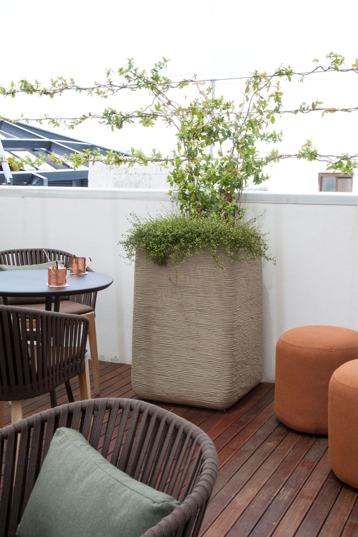 The BCH collection by Atelier Vierkant features a tall, cylindrical form with a commanding yet elegant presence. Handcrafted in Belgium from high-fired clay, each planter carries the subtle surface variations that highlight its artisanal origin. With its vertical proportions, BCH is perfect for framing entrances, adding height to plant compositions, or creating architectural rhythm in both indoor and outdoor environments. Its timeless design and natural finishes make it equally suited to contemporary and classical spaces.