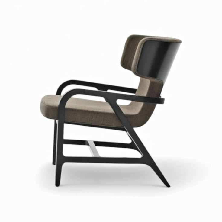 The Fulgens armchair is designed as a unique piece that seamlessly integrates with both traditional and modern sofas. With one size and a single finish, it stands out with its lacquered black shellac structure, showcasing exceptional craftsmanship. Stylistically, it evokes the timeless elegance of Thonet classics, while also incorporating subtle oriental influences. The silky hand of the wood, along with the external lacquered finish, enhances its luxurious feel.