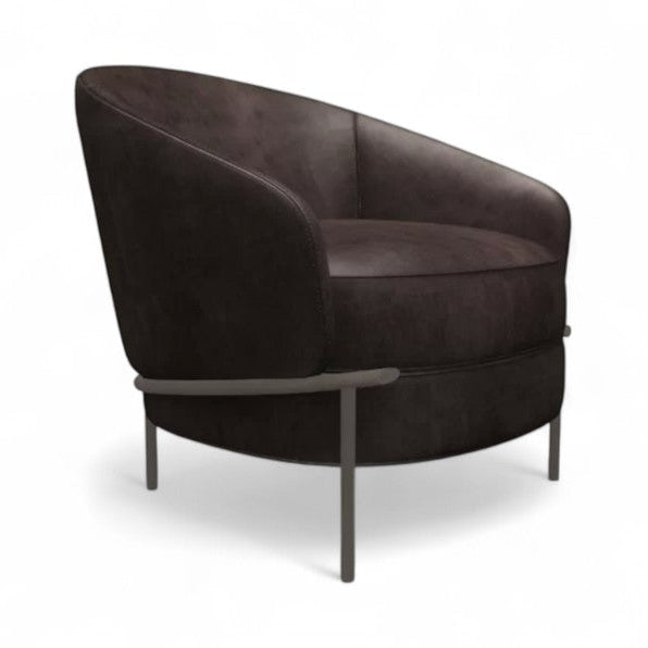 The Lloyd armchair is designed by Giuseppe Iasparra for the Longhi collection. Its refined, enveloping form is highlighted by the soft curves of the shell that shape the armrest.